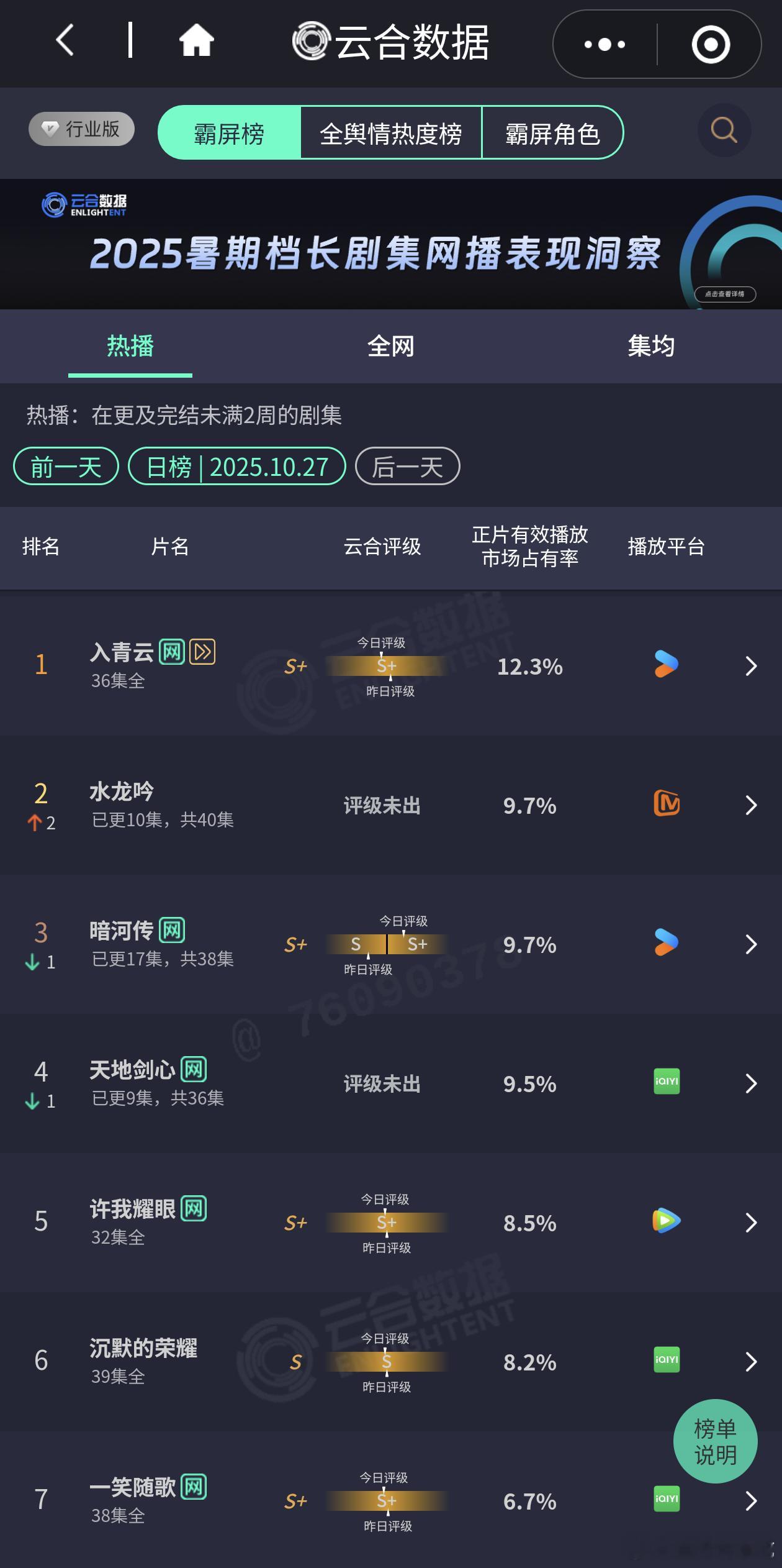 水龙吟表现太棒了,工作日逆势上涨,强剧情就是最牛的,一直有新观众入场!水龙吟云合
