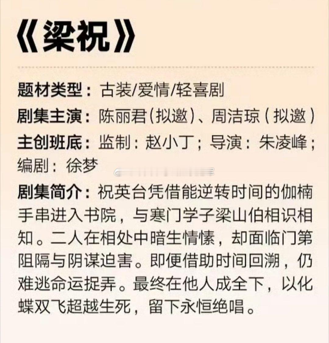 🍉🍉今天的🥭秋招会大剧片单《梁祝》双女主:陈丽君,周洁琼