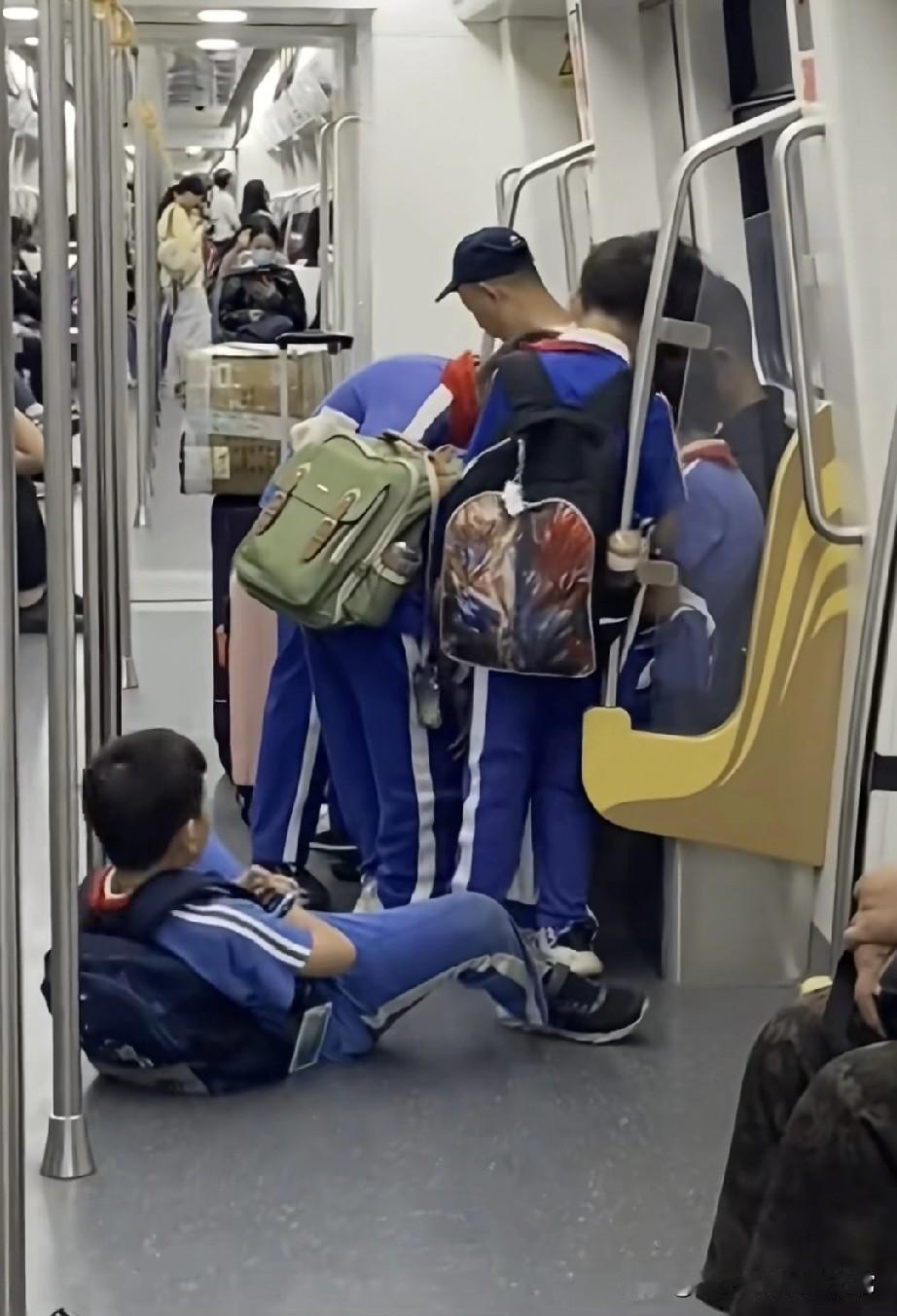 深圳地铁小学生把车厢当乐园,这才是童年该有的模样! 深圳地铁里的这波操作绝了!一群穿着蓝白校服的小学生,在地铁上那叫一个放飞自我:有的在车厢里随性舞动,像小舞者在舞台上绽放;有的和同学“斗牛牛”玩闹,笑声能穿透车厢;还有的干脆往地上一躺,把地铁当自家“小窝”…… 这活力简直溢出屏幕!想想我们小时候,不是被爸妈拽着赶路就是规规矩矩坐好,哪敢这么“造”。有人说这是孩子天性释放,该夸;可也有人担心地铁是公共场合,这样会不会太“野”? 你觉得小学生在地铁里这样放飞,是该支持还是该引导?来聊聊~
