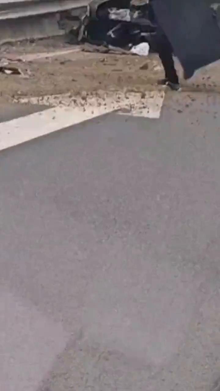 高速上发生车祸了,近距离看一下,轮子都撞掉了,气囊也弹出来了,零件碎一地,应该快报废了。这是什么车?