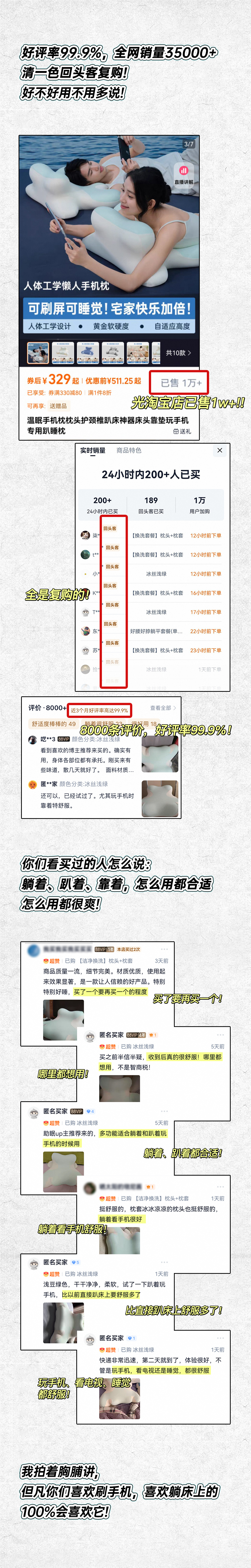最后讲优惠,他们家这个手机枕原价409,特价329,一个手机枕=助眠枕,靠枕,趴枕,躺枕,抱枕,性价比非常非常高!