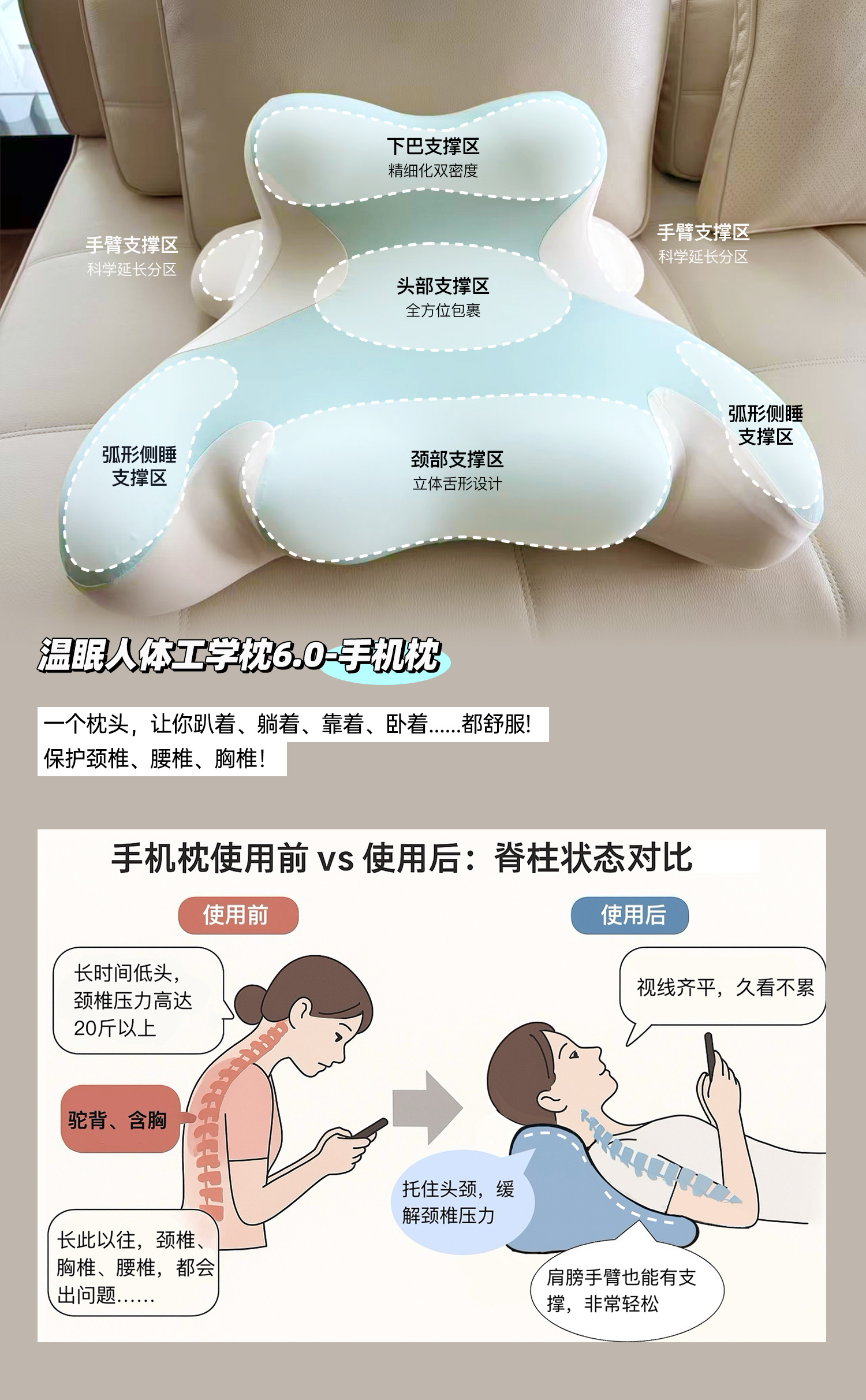 跟进了两个月,终于能把我工作室的小伙伴都想内购的「人体工学手机枕」推荐给你们👉