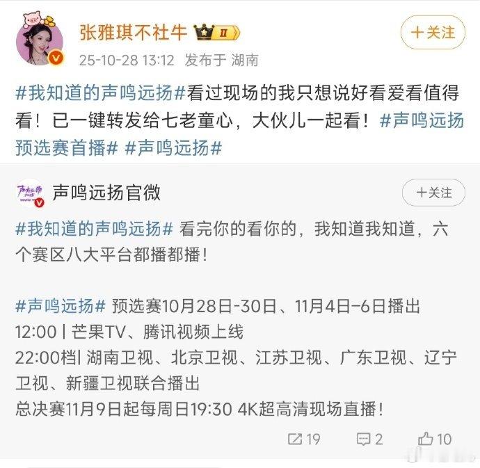张雅琪喊七老童心看声鸣远扬张雅琪太懂观众的心了!主持《声鸣远扬》还惦记着那英、陈数他们,“好看爱看值得看” 的安利超真诚,花少团的友谊果然不是节目效果,是真家人啊! 声鸣远扬