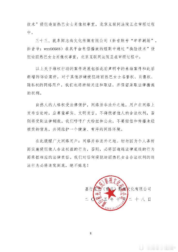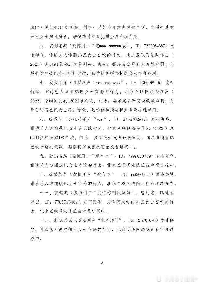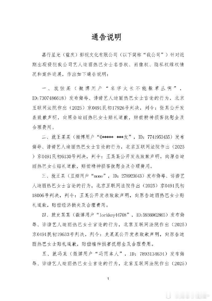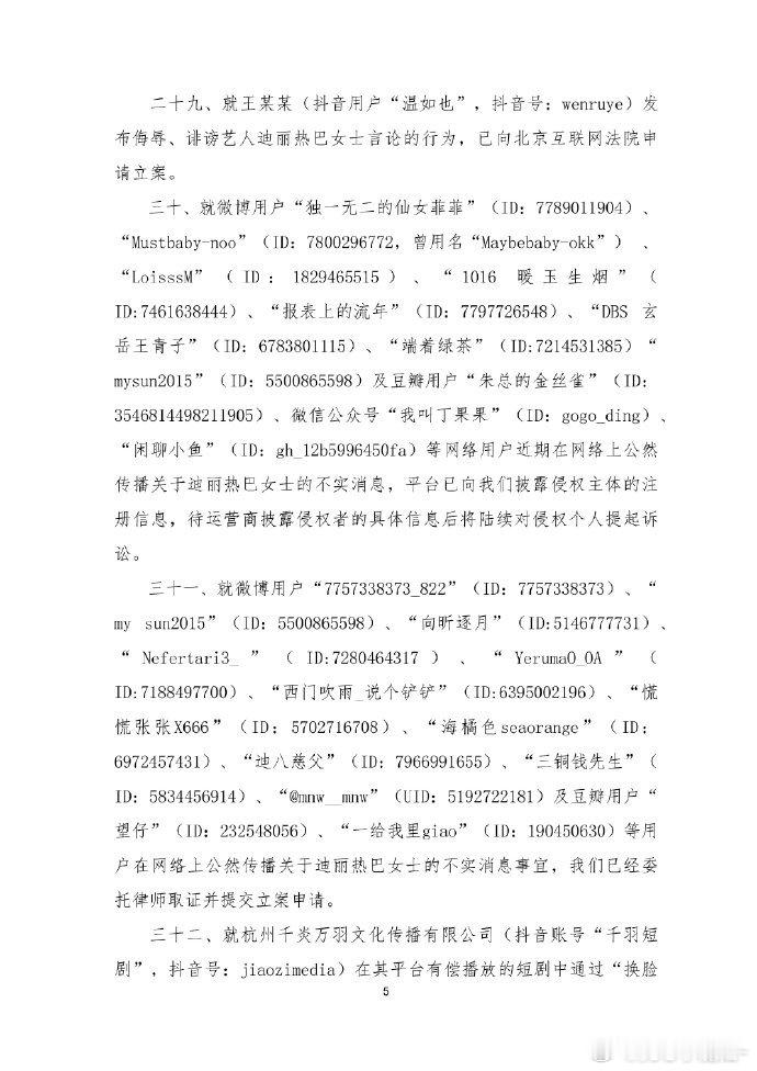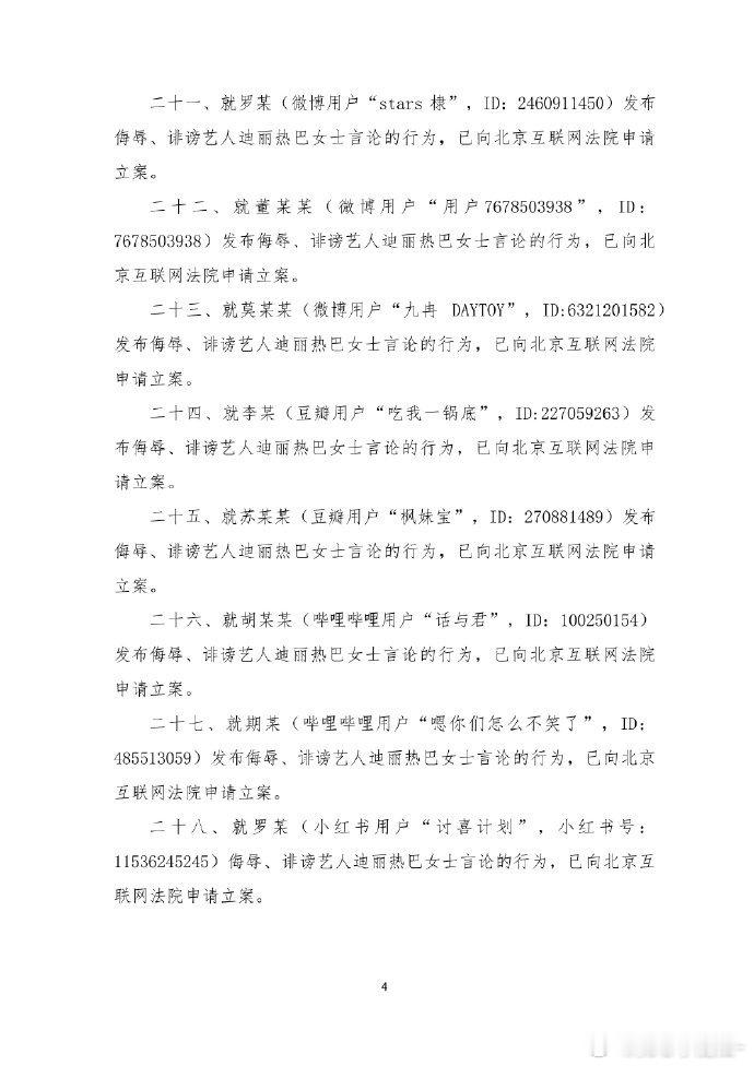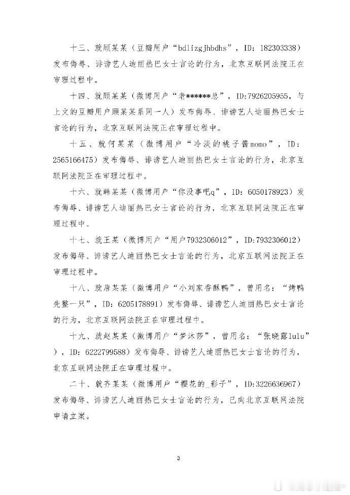 迪丽热巴最新告黑声明,告了好多人