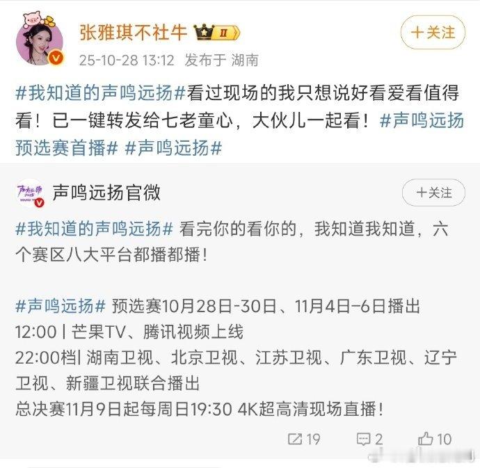 张雅琪喊七老童心看声鸣远扬 这波回忆杀拉满了!张雅琪发博安利新节目,还特意
