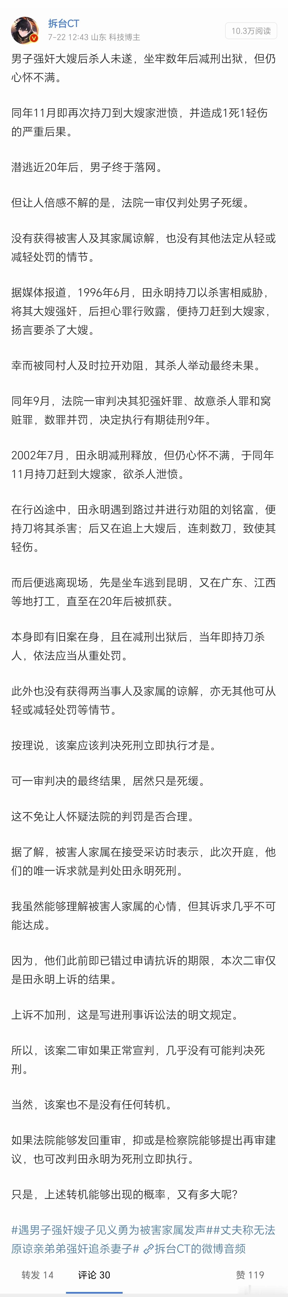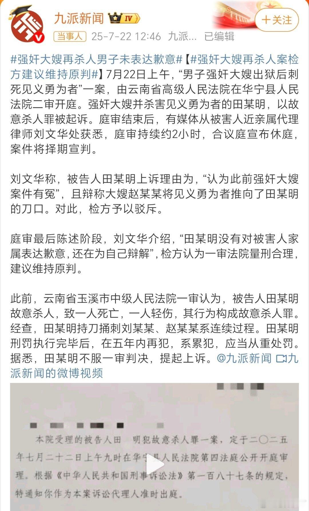 男子强奸嫂子再杀人案启动再审田永明故意杀人案启动再审