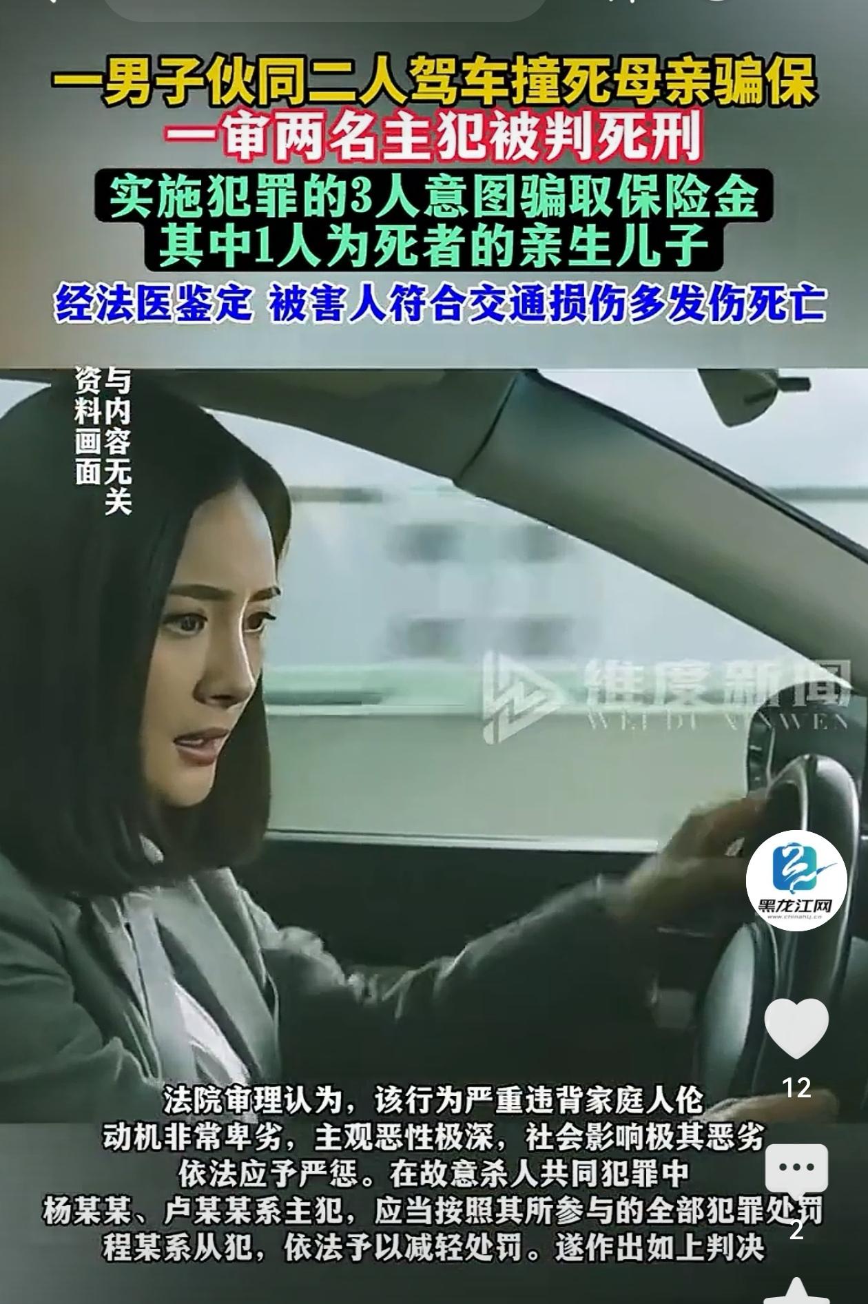 浙江台州,44岁女子车祸住院,其23岁儿子偷走她身份证和银行卡,把她保险理赔的312300元全部转走给其同伙。之后又和2个同伙商议把母亲眼睛戳瞎制造交通事故,骗取保险理赔。未果后竟把母亲骗到路边,让其同伙开车撞死母亲。女子丈夫说出的1个真相,却让人不寒而栗! 2023年,44岁的徐女士遭遇车祸住院,本以为能靠30多万的保险理赔金安心养伤,可她万万没想到,最想置她于死地的,竟是自己含辛茹苦养大的亲生儿子。 23岁的卢某,在母亲卧病在床时,眼里没有半分担忧,满脑子都是这笔“救命钱”,甚至为了榨取更多利益,不惜联手外人对母亲痛下杀手, 卢某的背后,站着一个叫杨某的“带头大哥”。 这个无业的初中同学,靠着营造阔绰形象控制着卢某等人,脾气暴躁还经常打骂卢某,让这个三人小团体彻底沦为他的工具。 在杨某眼里,人命不过是赚钱的筹码,他曾特意上网搜索“钉子插眼”“撞死人判刑”,算出戳瞎一只眼能赔五六十万,撞死能赔上百万,这种冷血的算计,成了他们作案的“行动指南”。 2023年7月,徐女士31万多的理赔金到账,杨某立刻教唆卢某偷走母亲的身份证和银行卡,两天内就把钱全部取走。 这笔本应用来治病的钱,很快被三人挥霍一空,买高端手机、租豪车旅游,花得心安理得,完全忘了这是母亲的救命钱。 面对母亲的追问,卢某还编造“钱拿去帮父亲还贷”的谎言,丝毫不顾母亲的焦急与无助。 更让人无法接受的是,钱花光后,杨某又策划了更恶毒的计划,制造事故戳瞎徐女士的眼睛骗保。 2023年9月,卢某曾骑车载着母亲,准备配合同伙程某动手,可因为内心残存的一丝良知而未能得逞。 可当杨某用“你和母亲关系不怎么好”“事成之后日子会更好”劝说时,卢某的那点良知彻底崩塌,甚至同意了杀害母亲的最终计划。 而最让人不寒而栗的真相,来自徐女士的丈夫,卢某的父亲。 他并非无辜,之前就曾配合儿子的同伙,用竹枝戳自己眼睛骗保1318元。 当他亲耳听到儿子和杨某在家中商议要开车撞死妻子时,从最初的“不同意”,在几人反复劝说下,竟变成了“随便你们怎么样都行”。 这句默许,彻底抽掉了这个家庭最后的道德底线,让这场谋杀少了最后一道阻碍。 2023年9月30日晚,卢某以谎言将母亲骗到椒江区一处无监控的村路。 早已等候的杨某驾驶凯迪拉克越野车,以76公里的时速猛然撞向徐女士,将她撞飞至田地里,最终不治身亡。 他们还试图伪装成交通事故,甚至让杨某家属赔偿7万元掩人耳目,可保险员发现的“聊天记录等一下删了”的消息,让真相彻底暴露。 2024年4月,法院一审判决,杨某和卢某因故意杀人罪、盗窃罪被判死刑,从犯程某获刑7年。 法律给出了公正的裁决,可这个家庭的伦理崩塌,却留下了沉重的警示。 亲生儿子的贪婪、外人的教唆、丈夫的默许,共同酿成了这场悲剧。 它提醒我们,金钱的诱惑再大,也不能泯灭人性,家庭的温暖与责任,才是最该坚守的底线。 大家对此怎么看?欢迎评论区留下您的观点!