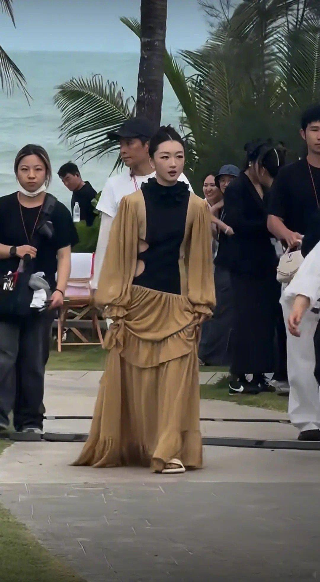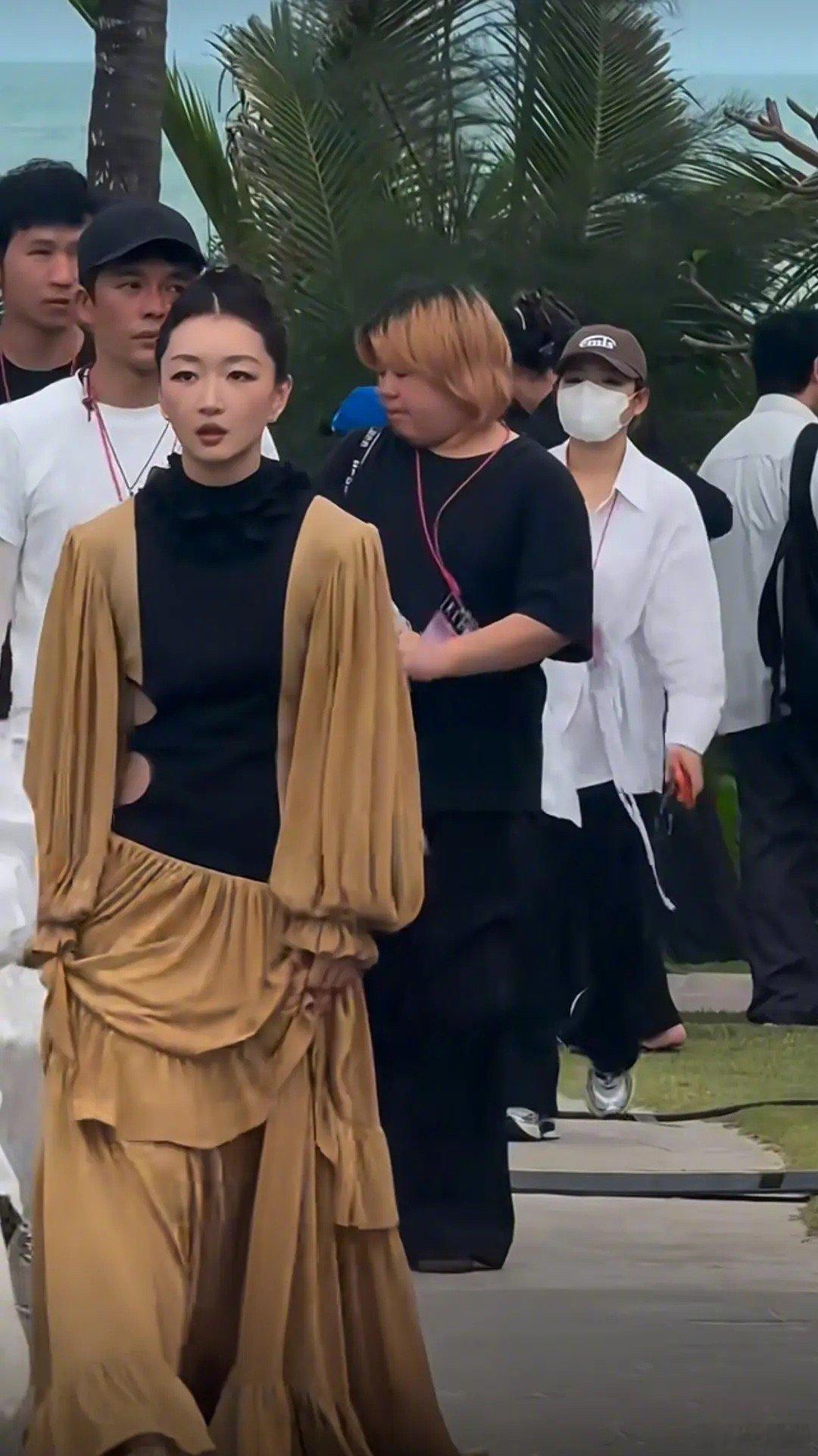 张天爱跟素人合影,胯真的好宽,大宅院似的