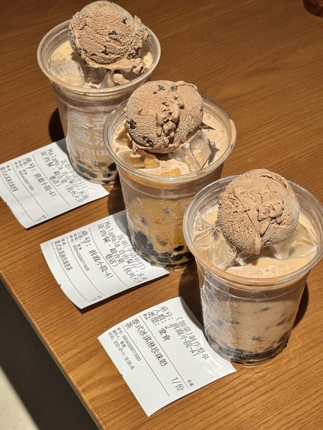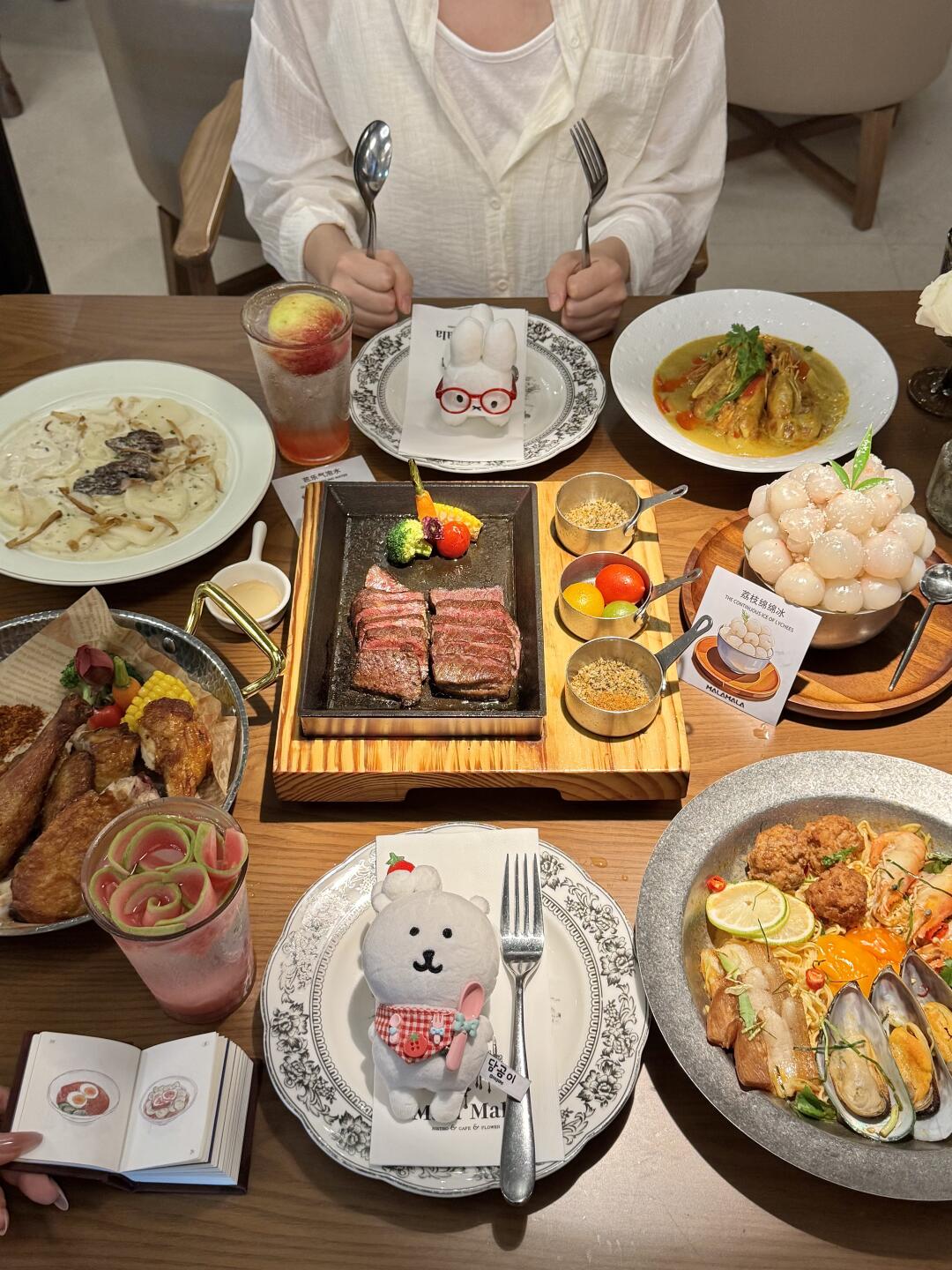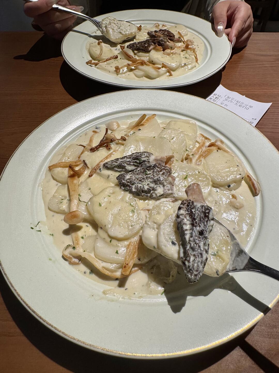 氛围好好的餐bar、 黑松露羊肚菌烩年糕✔️羊肚菌吸满了浓郁的白汁,年糕裹满了酱汁…好吃~ 荔枝冰✔️每一口都能吃到大颗的果肉!牛奶冰清凉爽口!! 冰淇淋泰奶✔️冰激凌融化在泰奶里好好喝!!