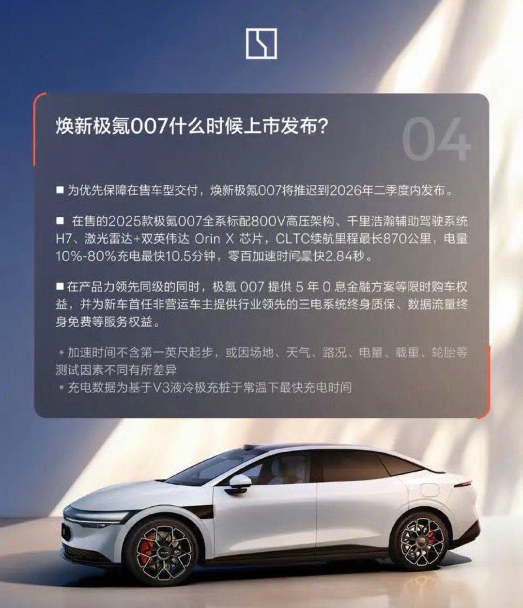 【焕新极氪007将在2026年第二季度上市 为保障在售车型交付】在最新一期极氪零距离中,极氪官方表示,为保障在售车型交付,焕新极氪007将在2026年第二季度上市。