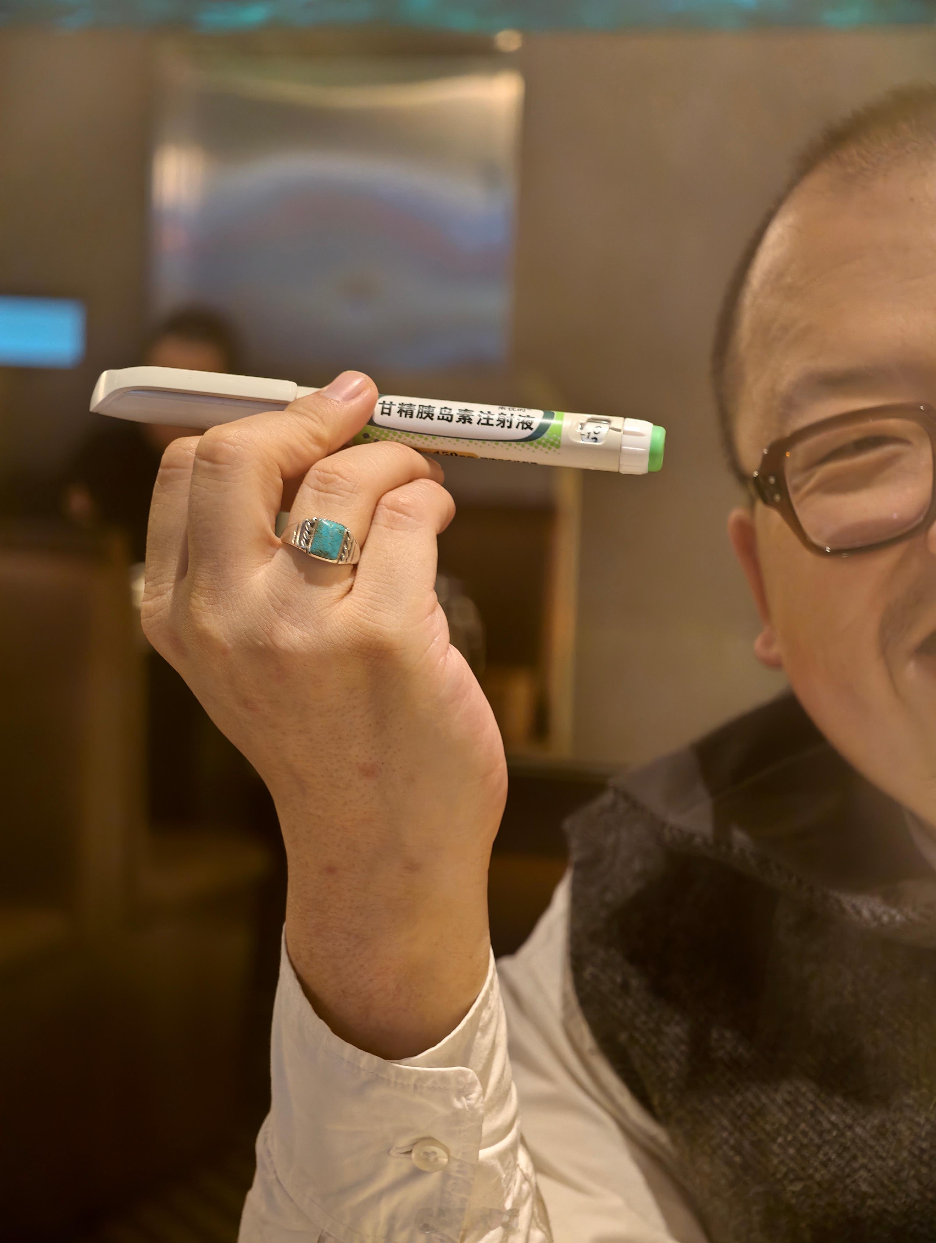 说罢他顺势掏出抗凝药和雪茄一样的胰岛素针,以前烟酒不离手,如今养生不离口。