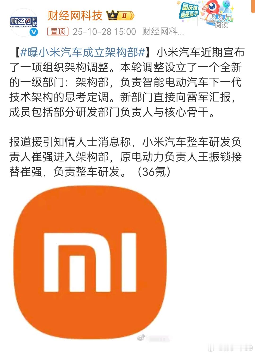 车企组织架构越来越高效是大趋势,感觉其他品牌也会跟进曝小米汽车成立架构部