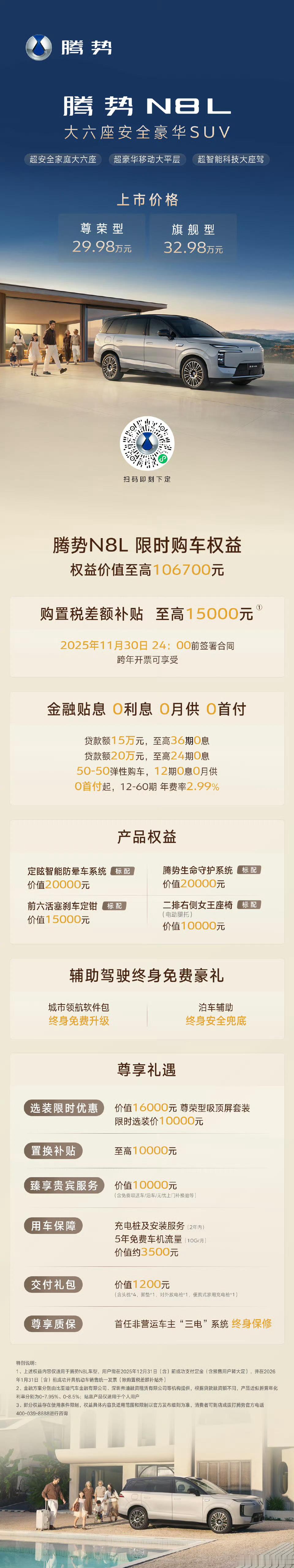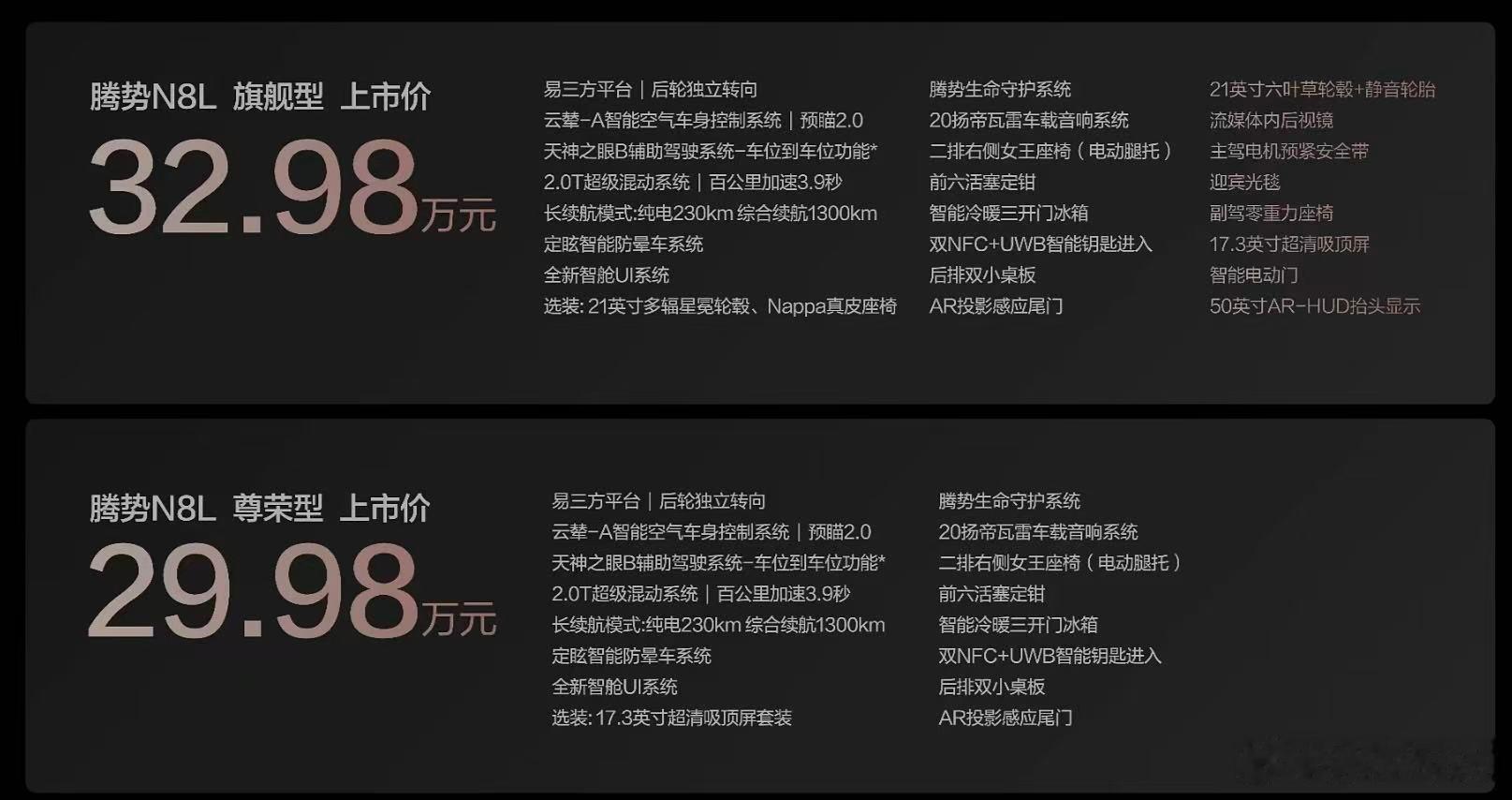 腾势N8L正式上市,两个配置,起步价29.98万价格和配置一步到位,Q3季度开始
