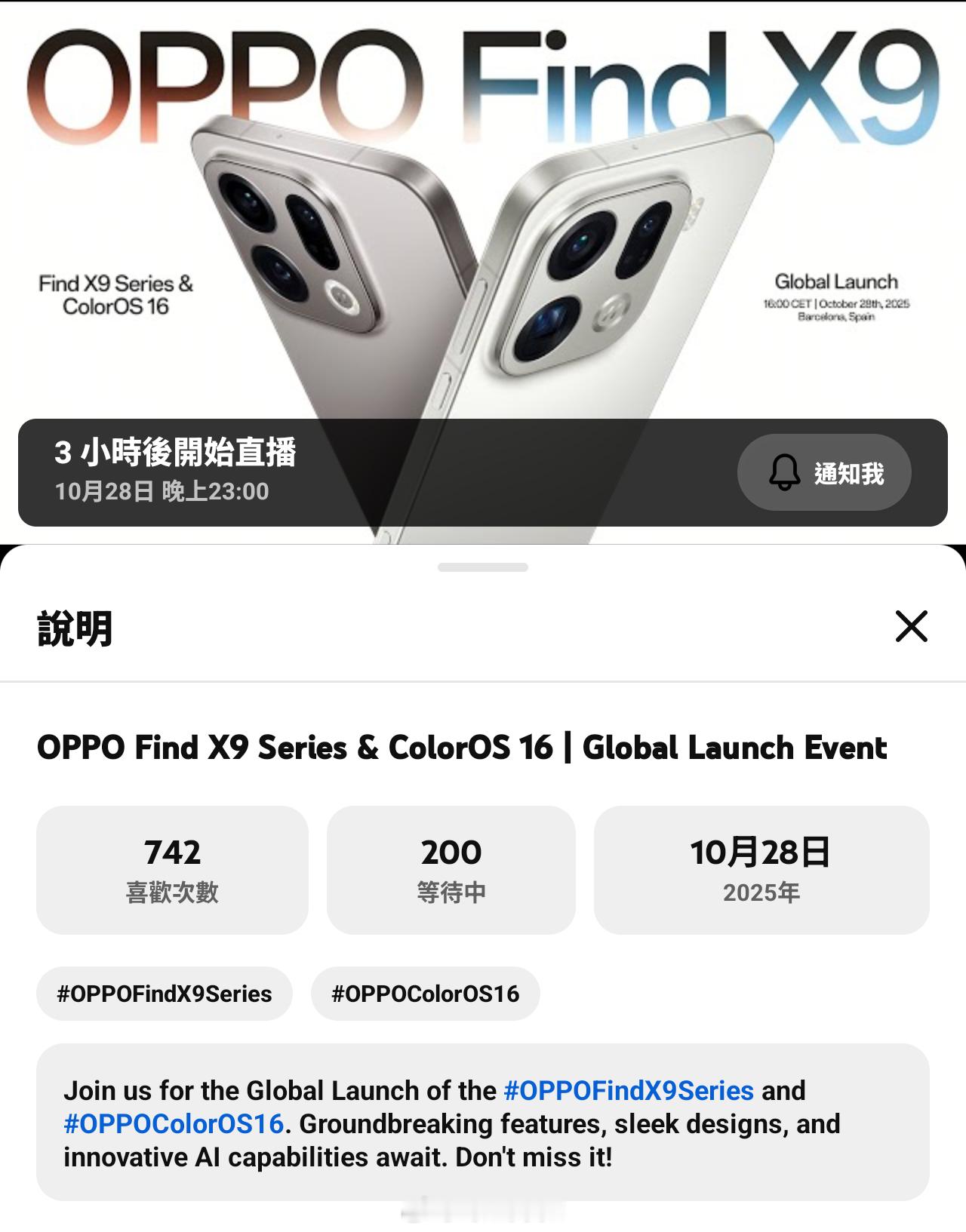 OPPO Find X9系列国际版发布会马上开始[doge][doge][doge]