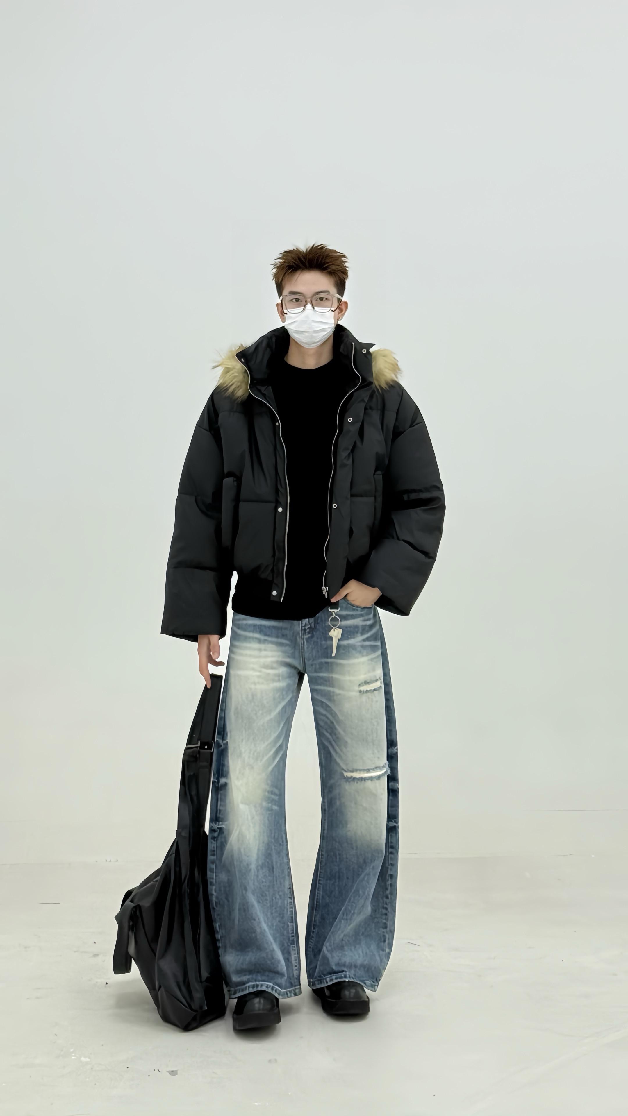 羽绒服穿不好就会臃肿显胖,今年比较推荐短款的面包服,再加上高腰阔腿裤,轻松穿出好