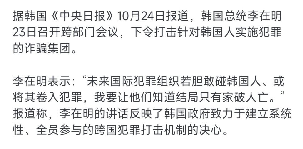 韩国总统李在明下令打击针对韩国人的电信诈骗,屁成绩没看到,一堆人就开始舔。
