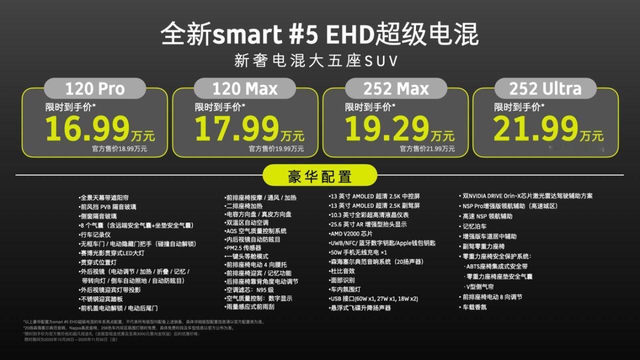 【限时到手价16.99万元起,smart5EHD超级电混正式上市】10月28