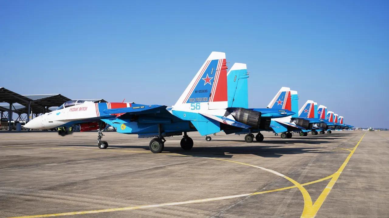 今天,参加2025南昌飞行大会的俄罗斯“勇士”飞行表演队苏-30SM、苏-35S降落南昌瑶湖机场 烽火问鼎计划制胜空天
