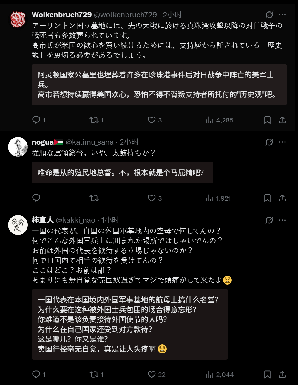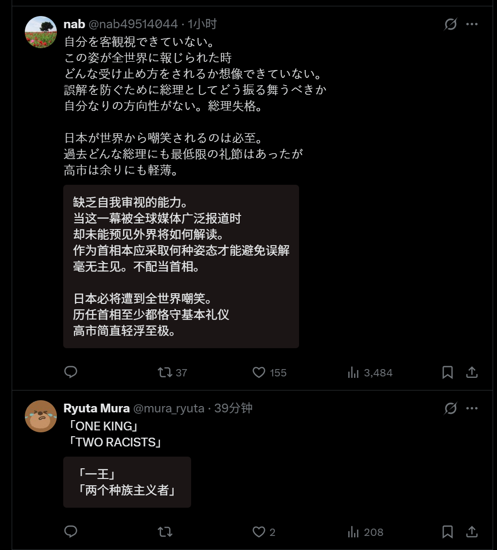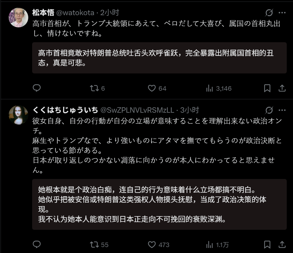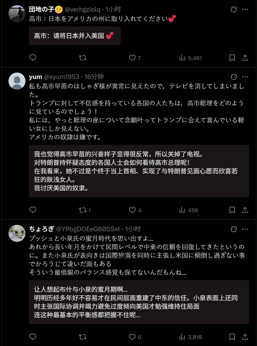 🔻网友分享:一部分日本人继续痛骂高市早苗。