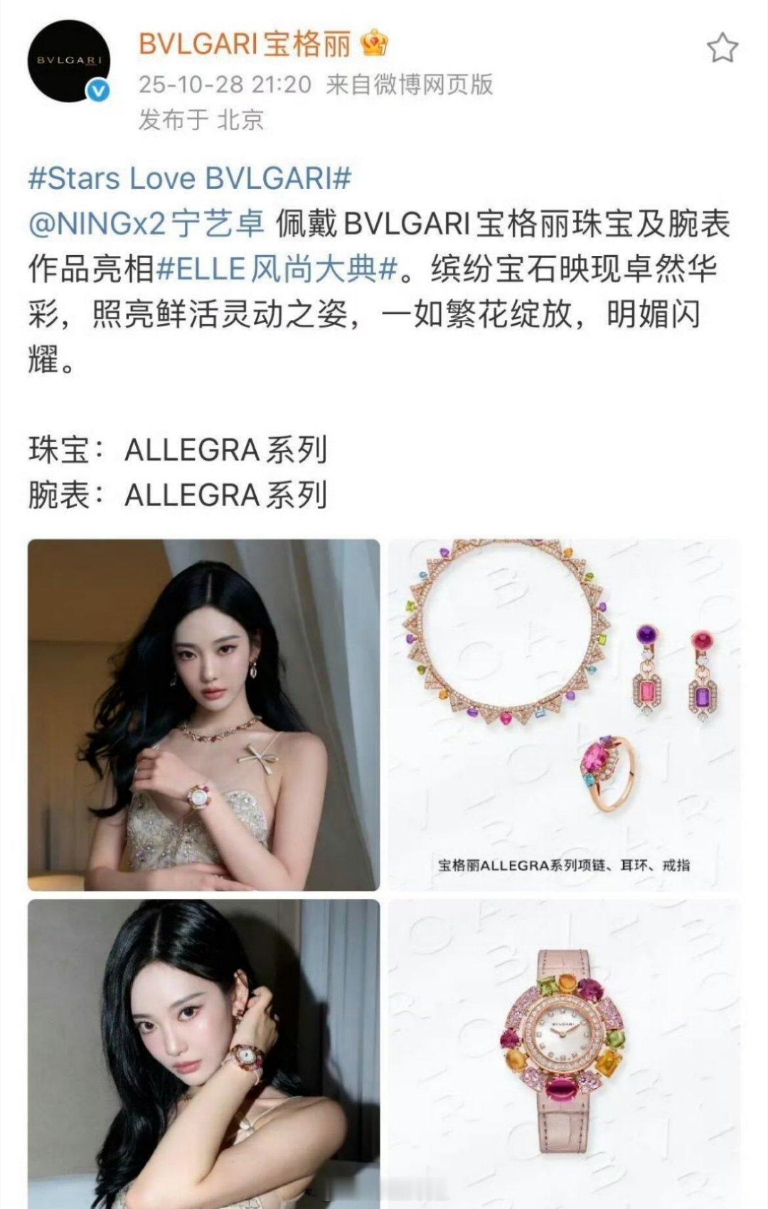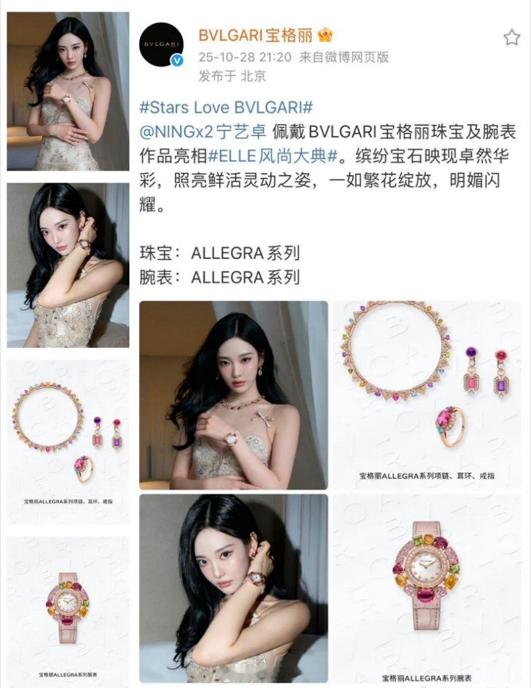 宁艺卓在参加ELLE盛典所佩戴的珠宝首饰被品牌方宝格丽认领了,一身珠光宝气的,都价值不菲啊,宁艺卓这时尚表现力让你有购买欲望不?