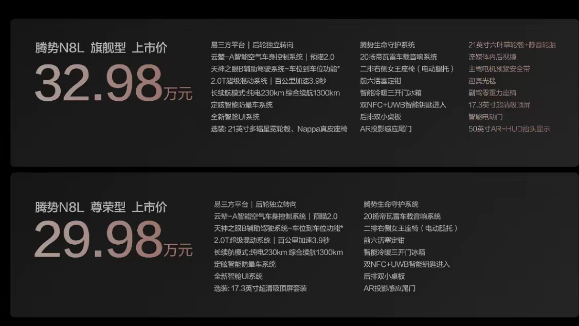 家庭选车,听我的,一台家人全票通过的车 真不是说说而已!腾势N8L刚上市,起步价29.98万,真心觉得是大六座SUV首选腾势N8L29.98万起,它的越级价值终极满足了我对一台家庭SUV的所有幻想。空间大到家门口变游乐场,六个人全都宽敞舒适,老人第三排也能坐得服服帖帖,宝宝模式、女王副驾驶统统配齐。转弯半径比小车还小,妈妈也可以轻松开进窄停车位。智能座舱、帝瓦雷音响、AI大模型助教,一路玩一路学,家里人各取所需,谁都不将就!而且安全配置让人太安心,能做到210km/h鱼钩测试不甩,生命守护、主动被动安全,全方位守护家人。价格只要百万级豪车的三分之一,科技豪华感全拉满。强烈安利给大家,买大六座SUV别纠结了,真的要看看腾势N8L!