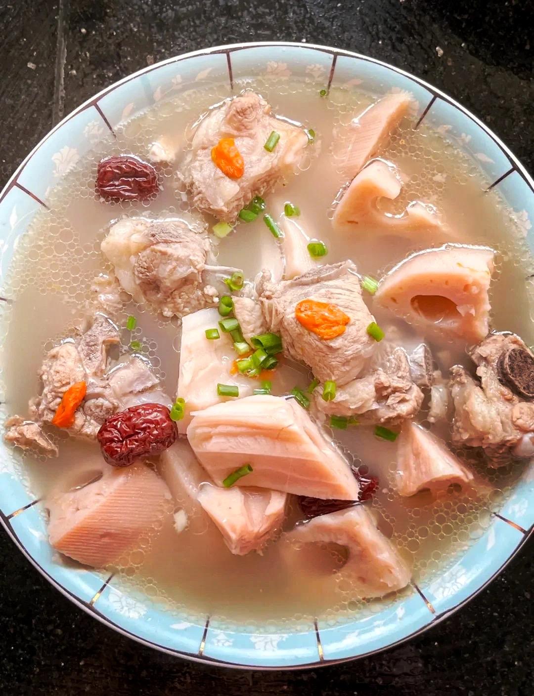 🥣【家常又养生】莲藕花生猪骨汤,喝出满满的幸福感!🍲✨ 大家好!今天我要带大家进入一个神奇的世界——那就是“莲藕花生猪骨汤”的奇幻旅程!别小看这看似普通的汤,它可是我们家常菜中的“养生冠军”,喝一口,幸福感爆棚,简直比中彩票还开心!话不多说,咱们直接进入正题,教你如何用最简单的食材,做出最养生、最滋补、最让人回味无穷的莲藕花生猪骨汤。 首先,咱们得准备点“硬核”材料:新鲜的猪骨(最好是猪大骨或猪脊骨,骨头越大越好,骨髓丰富,汤越浓郁!),莲藕、花生,还有点姜片、葱段、料酒、盐、胡椒粉,当然啦,还可以加点自己喜欢的配料,比如枸杞、玉米段、香菇,随你发挥!材料准备好后,咱们就开始“魔法”时间啦。 第一步:焯水去腥。别以为只要把猪骨放进锅里就完事了!不不不,咱们得先用冷水把猪骨冲洗干净,然后放入锅中,加入几片姜和料酒,大火煮开,焯去血水和杂质。这个步骤非常重要,否则汤会有一股“血腥味”,影响你的“幸福感”。 焯水完毕后,捞出猪骨,用清水冲洗干净,备用。这时候,厨房里是不是已经弥漫着一股浓郁的肉香?别着急,幸福还在后头! 第二步:炖汤。把焯好水的猪骨放入锅中,加入足量清水,大火煮开后转小火,保持微沸状态。这个时候,你可以顺便把莲藕和花生准备好。莲藕洗净,去皮,切成厚片;花生提前用清水浸泡半小时,既能缩短炖煮时间,又能让花生更入味。 把莲藕片和花生放入锅中,加入几片姜、一段葱段,继续小火炖煮。炖的时间大约在1.5到2小时左右,当然啦,越炖越香,越炖越浓。期间可以适量加入料酒、盐调味,别忘了尝尝味道,确保汤鲜味美。 第三步:调味提鲜。炖到差不多的时候,试试汤的咸淡,如果觉得不够,可以适量加点盐或者胡椒粉,提提味。这个时候,你会发现汤色变得浓郁,香气四溢,简直让人忍不住想“舔碗”! 如果你喜欢更丰富的口感,可以在最后加入一些枸杞或者玉米段,增加一份甜润和营养。记住,汤好喝的关键在于用心炖,慢火细熬,才能把所有的“养分”都释放出来。 第四步:盛出享用。汤炖好后,关火,撒上点葱花,热腾腾的莲藕花生猪骨汤就可以盛出来啦!趁热喝上一口,满满的幸福感瞬间涌上心头。莲藕的清甜、花生的浓郁、猪骨的鲜美,完美融合在一起,宛如一场味蕾的盛宴。 这碗汤不仅味道鲜美,还具有极佳的养生功效。莲藕富含膳食纤维,有助于润肠通便;花生含丰富的植物蛋白和维生素E,有益心血管健康;猪骨中的胶原蛋白,有助于美容养颜,喝完你会发现皮肤变得嫩滑有弹性。简直是“喝出满满的幸福感”! 好了,今天的“莲藕花生猪骨汤”养生秘籍就分享到这里。是不是觉得自己也可以变身“家常养生厨神”了?只要掌握了这几个步骤,家人朋友都能喝出幸福感,朋友圈点赞、收藏、转发一波接一波,成为大家心中的“养生达人”! 记住,生活不止眼前的苟且,还有这碗暖心又养生的汤,陪你度过每一个温暖的日子。快去厨房动手试试吧,把这份幸福带给家人,让他们在忙碌中也能感受到你的用心和爱!莲藕煲骨头汤 花生莲藕汤