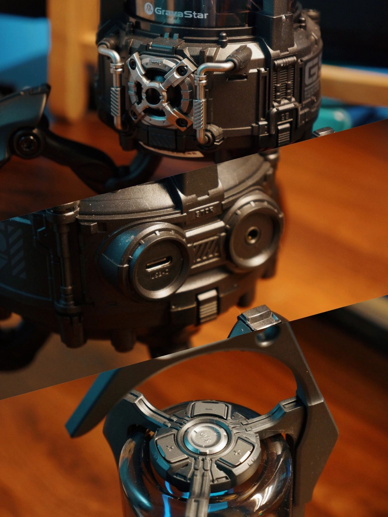 🎛其实很早在外🕸关注到这款音箱,作为Mars Pro的使用者,看到这仿生的机械钳设计就在怀疑是Gravastar 重力星球的作品,真的让我期待了很久。现在终于用上,立马get到Slogan“一款让你中毒的音箱”的感受。这炫酷的机甲造型和带着科幻透明的灯效搭配酣畅淋漓的音效,确实是让我爱不释手。