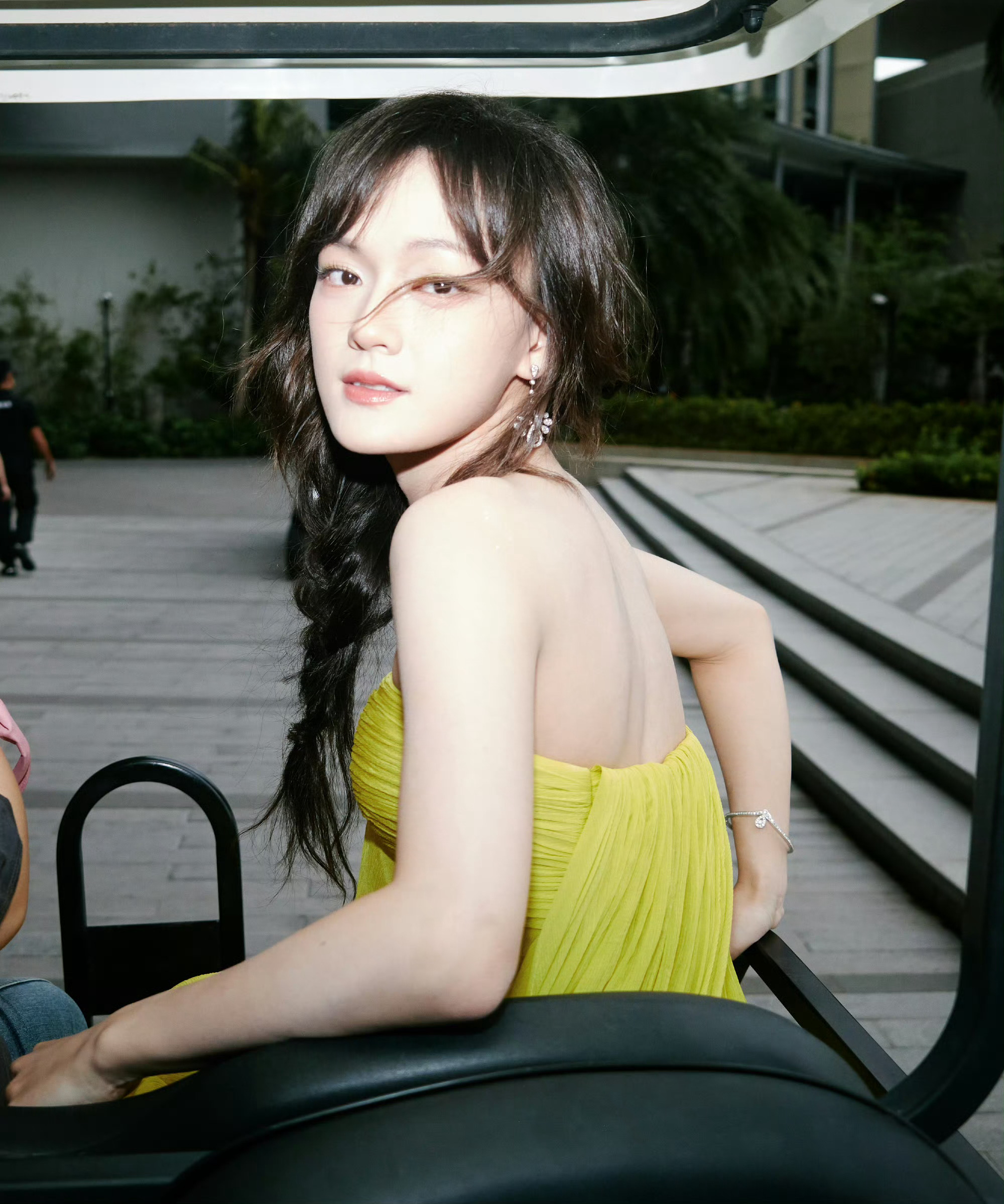刘亦菲把死亡玫粉穿出了定制款的感觉,这种颜色普通人穿上分分钟黑三度,她居然能穿出