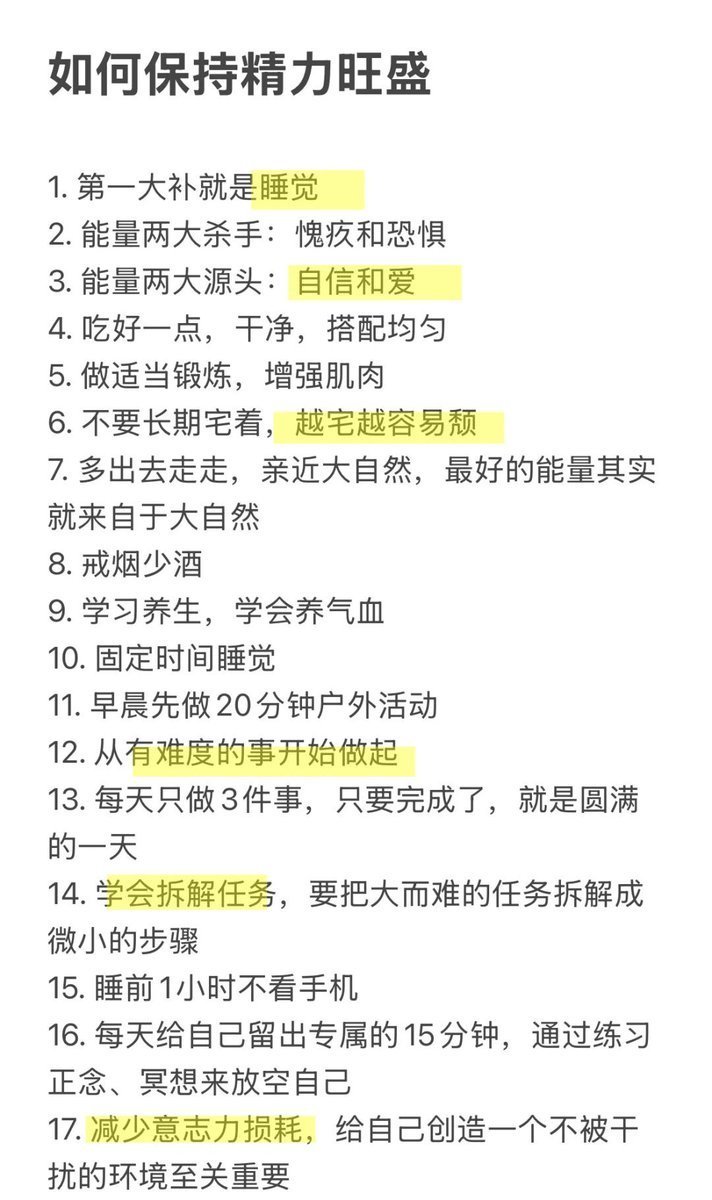 经常有人问我如何保持精力旺盛。我看了下我除了15做不到。其他都满足。