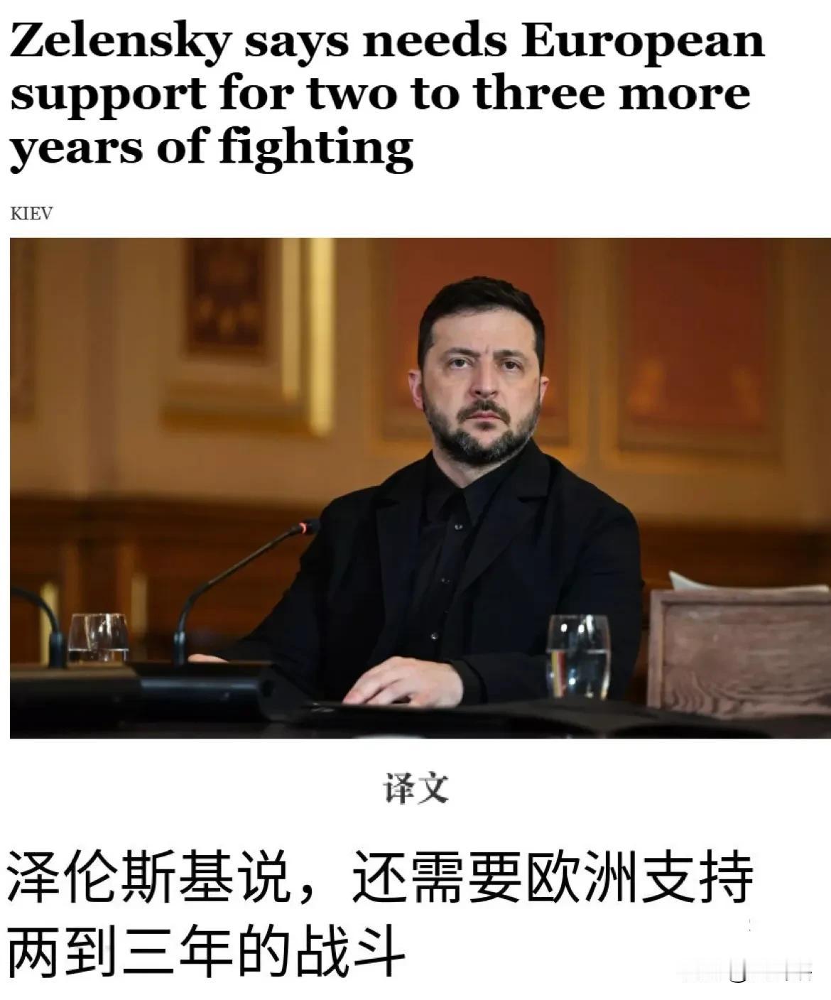 【泽连斯基希望欧洲继续支持让乌克兰再打几年】 综合媒体消息,波兰总理图斯克近日表示,泽连斯基告诉他乌克兰已经做好了再打两到三年的准备。 消息称,泽连斯基表示不会让冲突持续数年时间,但是希望欧洲国家可以为乌克兰提供稳定的财政支持,以让乌克兰可以继续战斗三年左右。 据悉,欧盟计划动用1400亿欧元被冻结的俄罗斯资产为乌克兰提供贷款,不过由于内部分歧较大无法达成共识,推进工作进展缓慢。