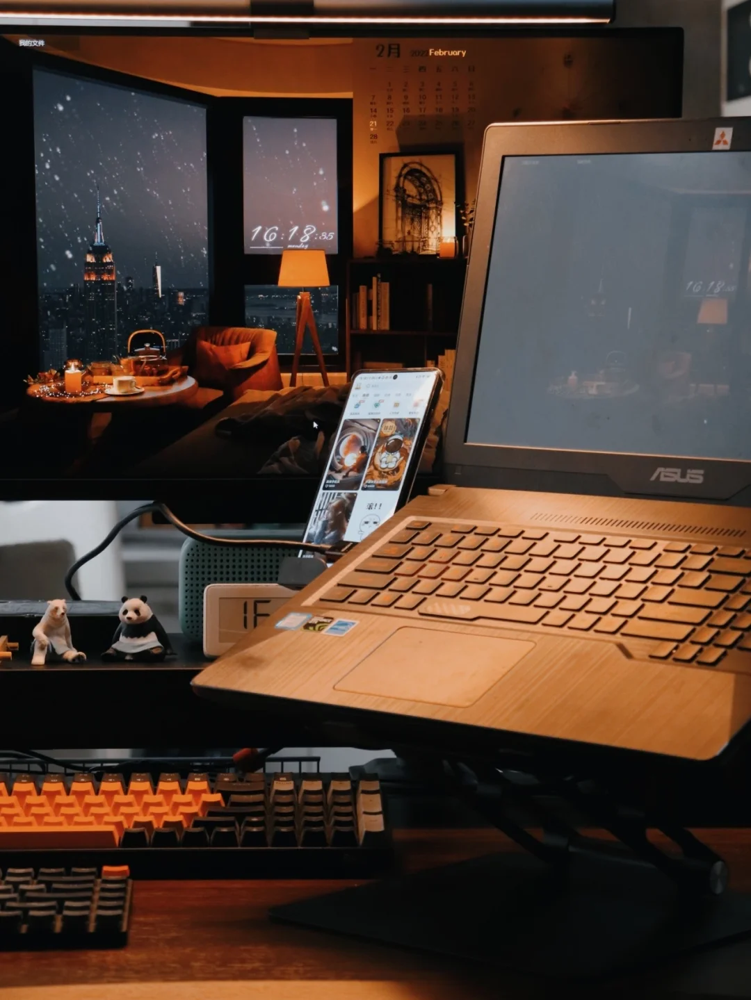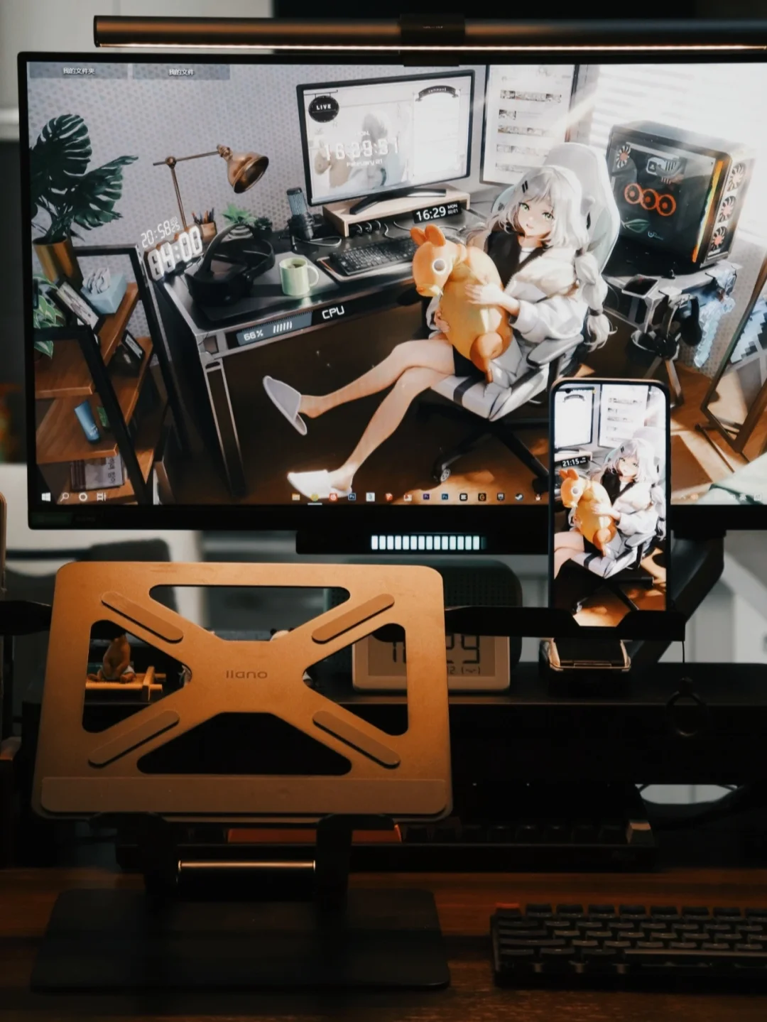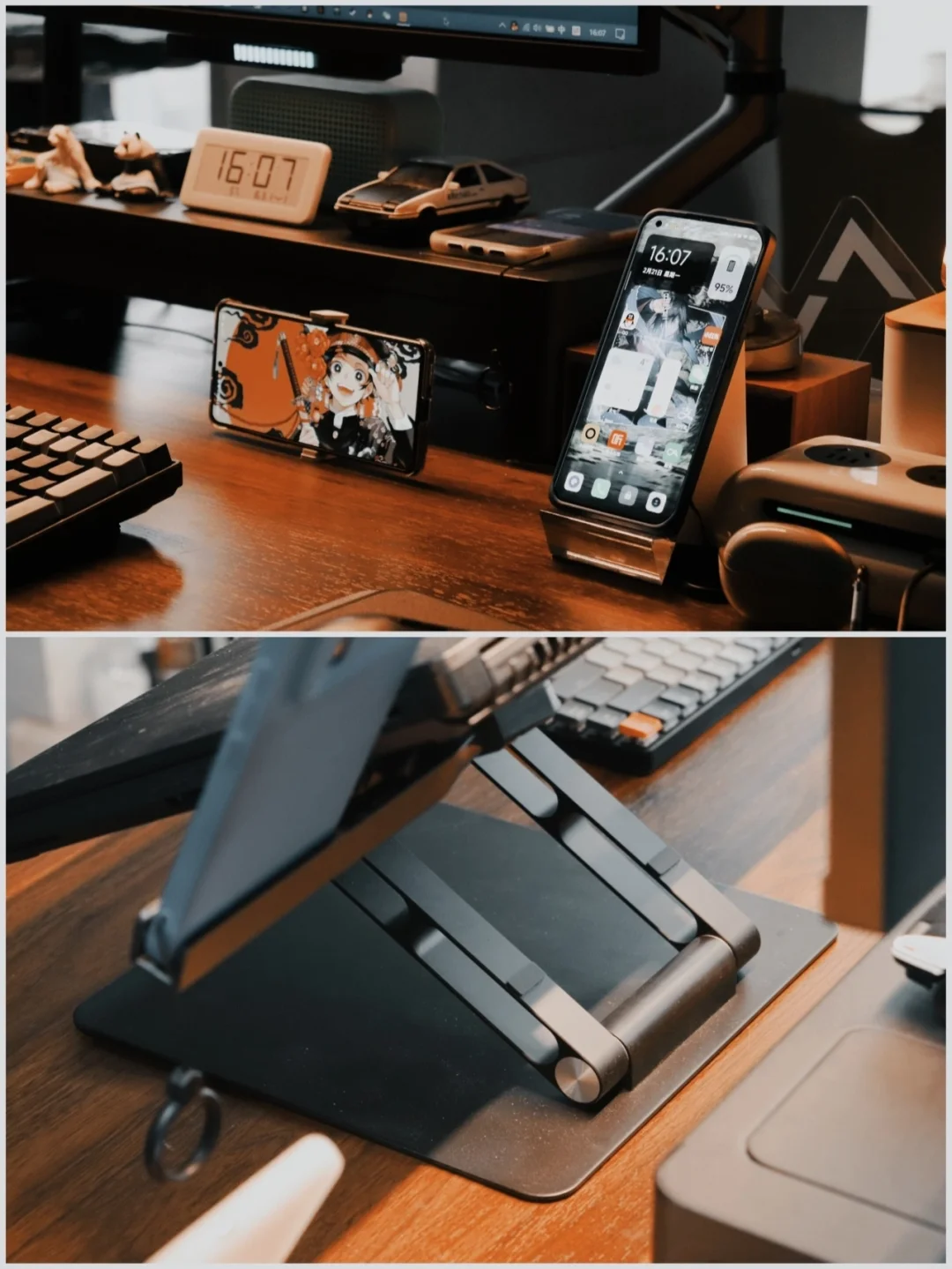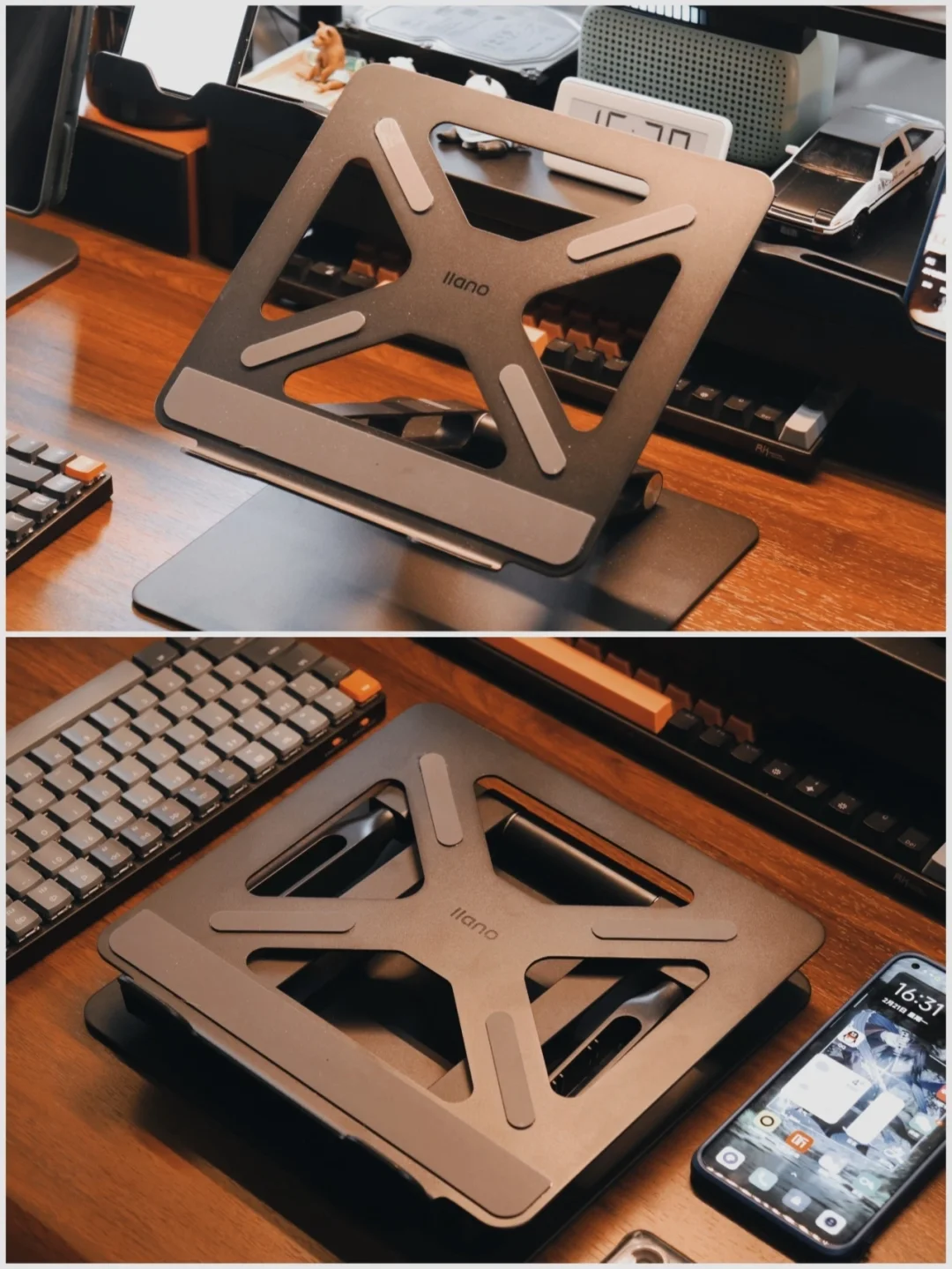 如果你只是笔记本,我会推荐使用笔记本支架让桌面的使用和工作氛围提高,不仅显的更有工作台的感觉,而且在支架的帮助下不用低头看显示屏了,同时也可以空出看见放置自己喜欢的东西。我用的这个支架比较好的就是旁边还可以延伸手机支架,可以把手机放在显示屏平板随时查看。