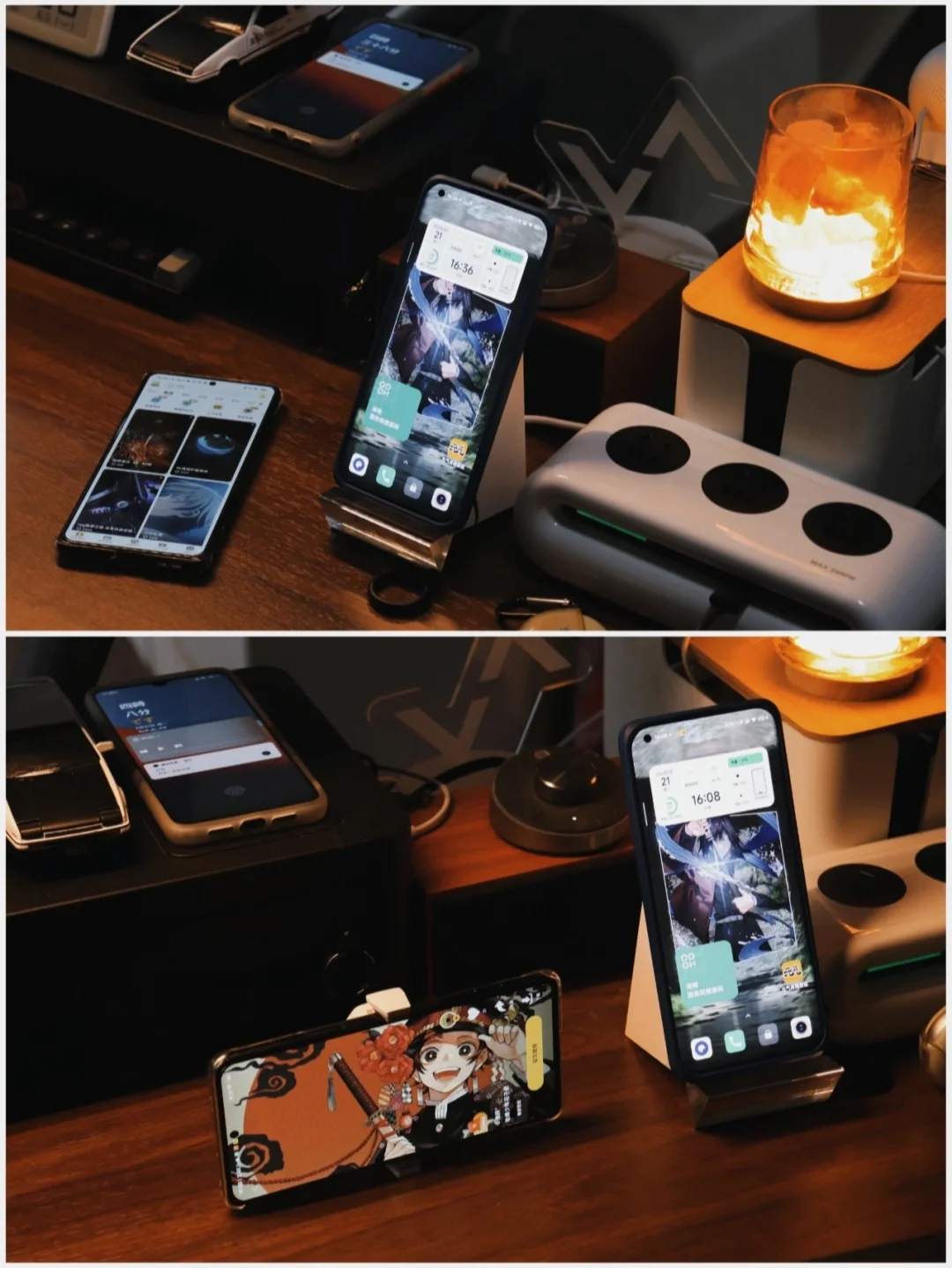 有时候也会选择二次元和唯美的壁纸p2/p4,但是都会选择功能性比较多的,例如有音频曲线,和日历,时间等等,考虑到日常桌面待机,会使用动态的主题桌面,平时桌面放着就很有氛围。整体加上手机也换上一样的壁纸,氛围感就上来了。
