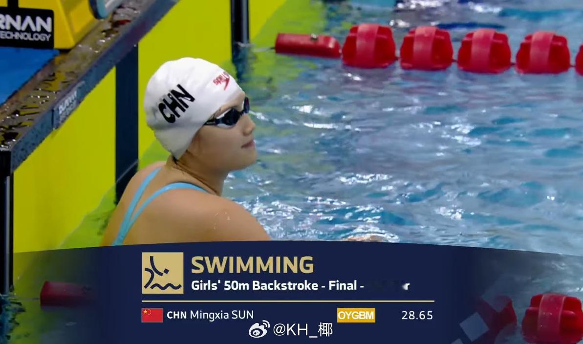亚洲青年运动会 女50仰决赛孙铭霞 28.65 CR陈亦涵 29.58