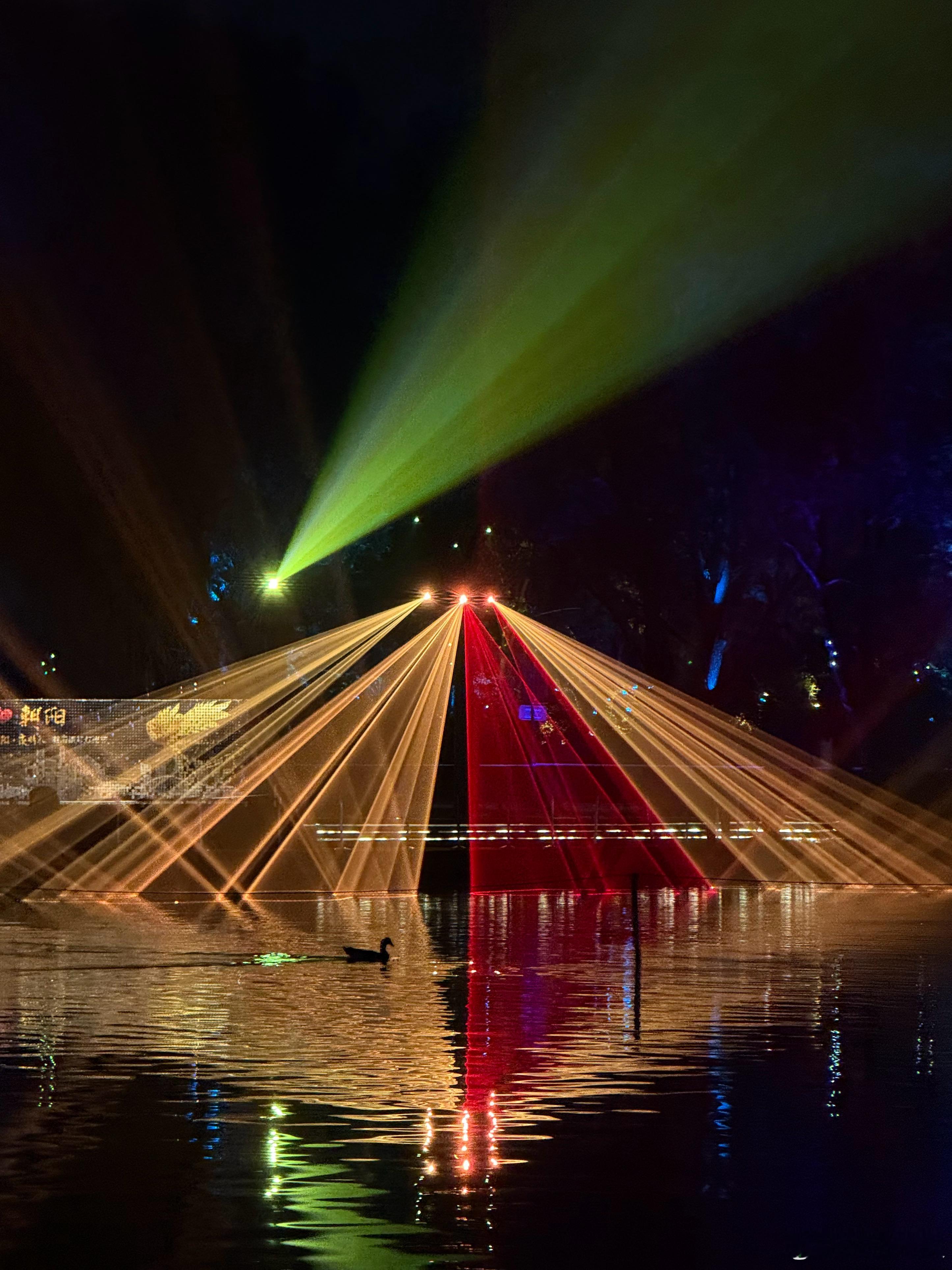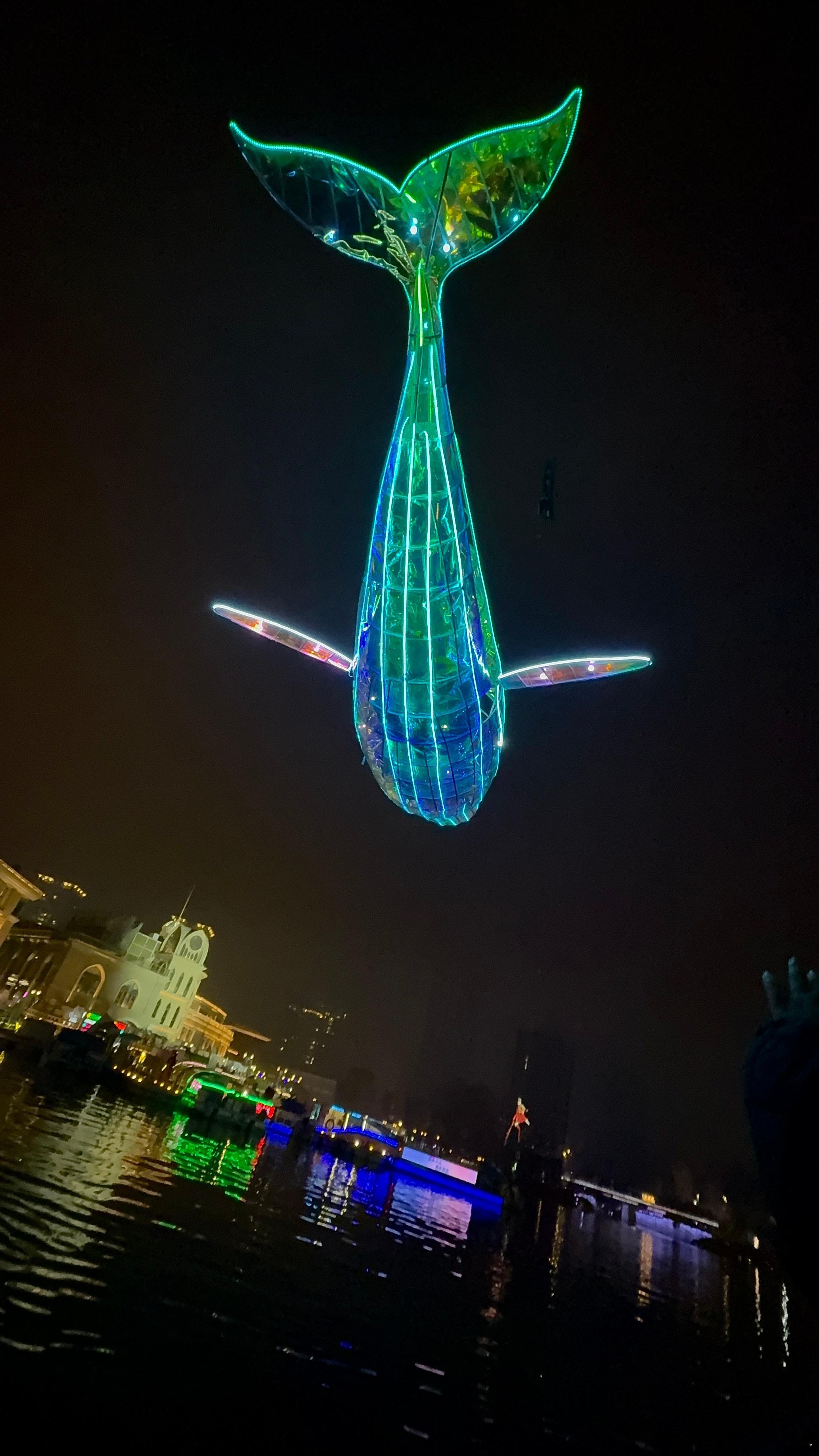 游船开的很久,可以看到popmart乐园、微博in广场等地方,以及天女散花表演,很惊艳[比耶]