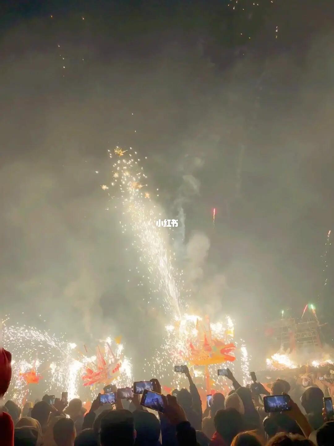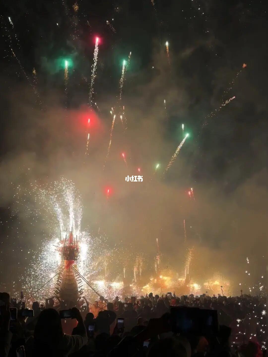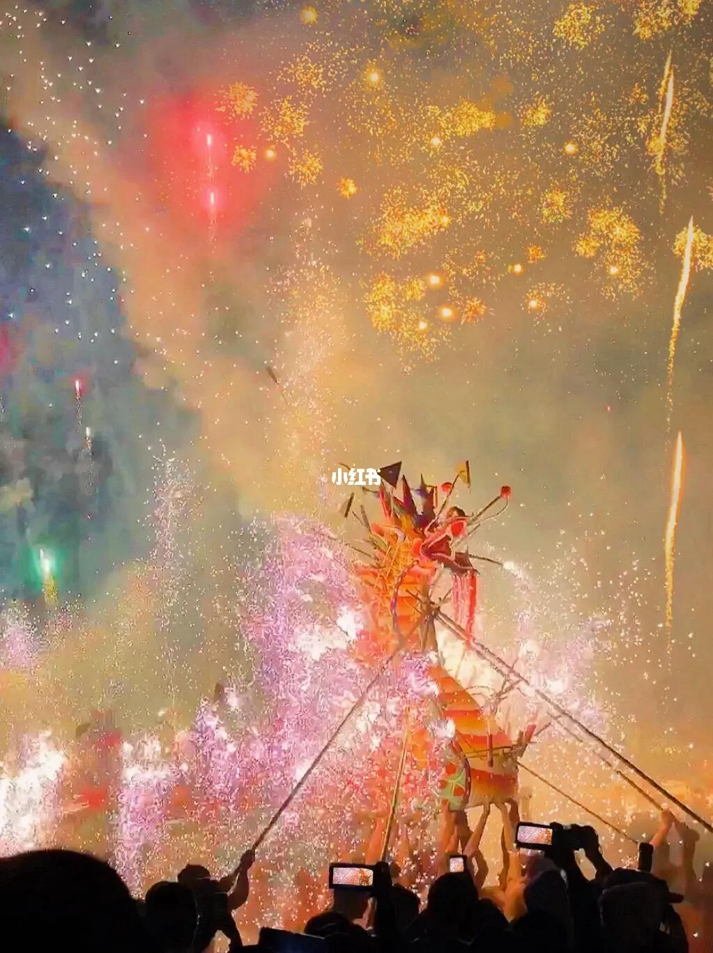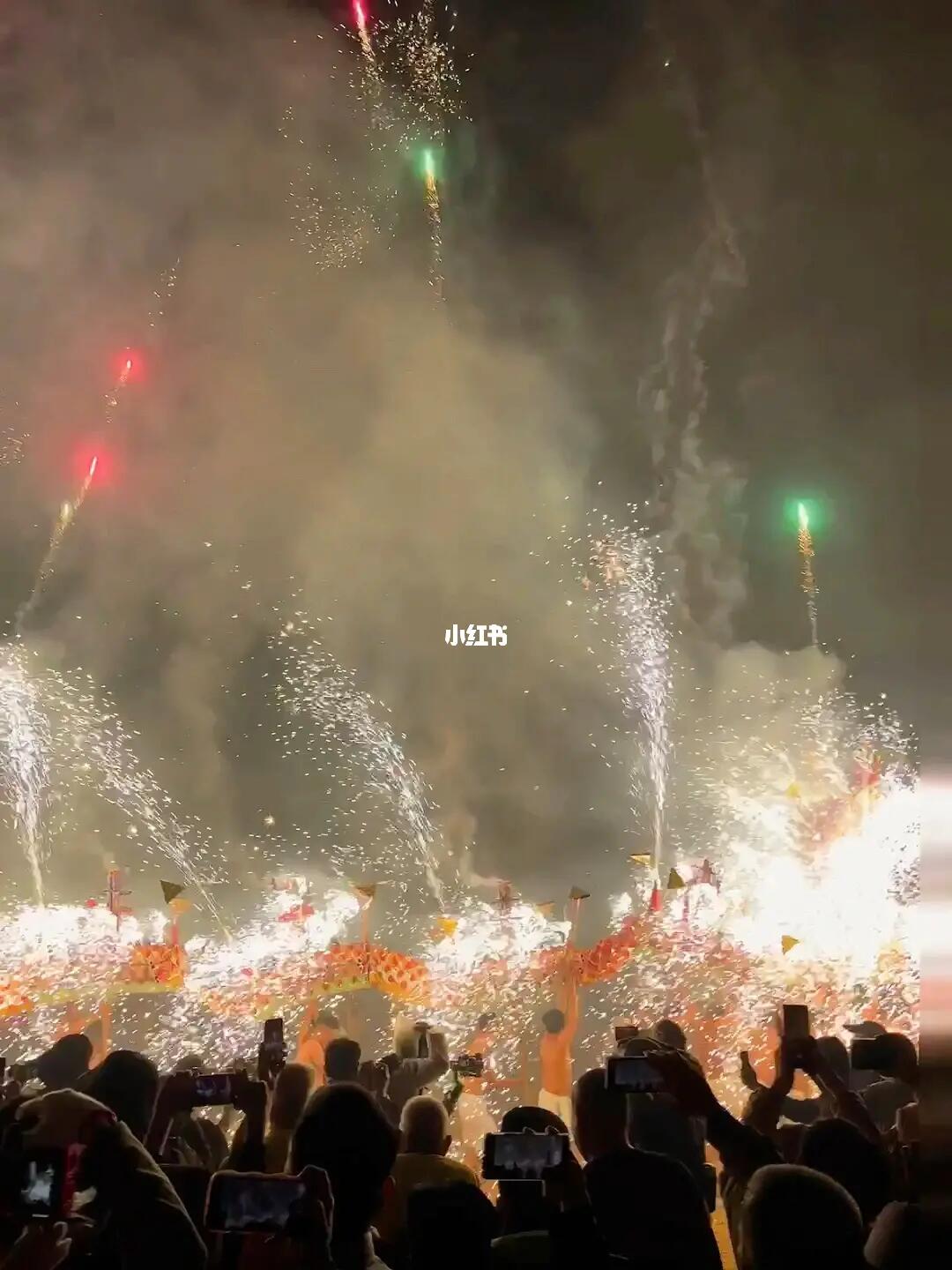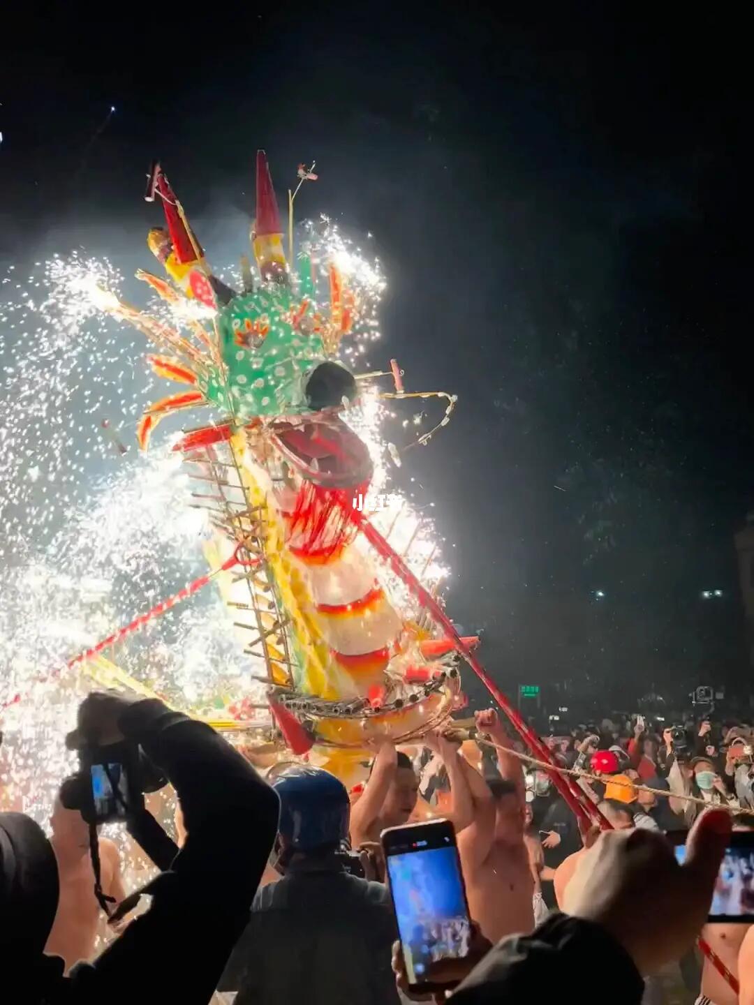 人生建议一定要看一次烧火龙🥹,火龙燃烧,烟花四起。祥龙在烟花中飞舞腾跃,人们随龙奔跑,尖叫,现场的震撼是无法拍摄出来的。全程都是哇哇哇哇的状态