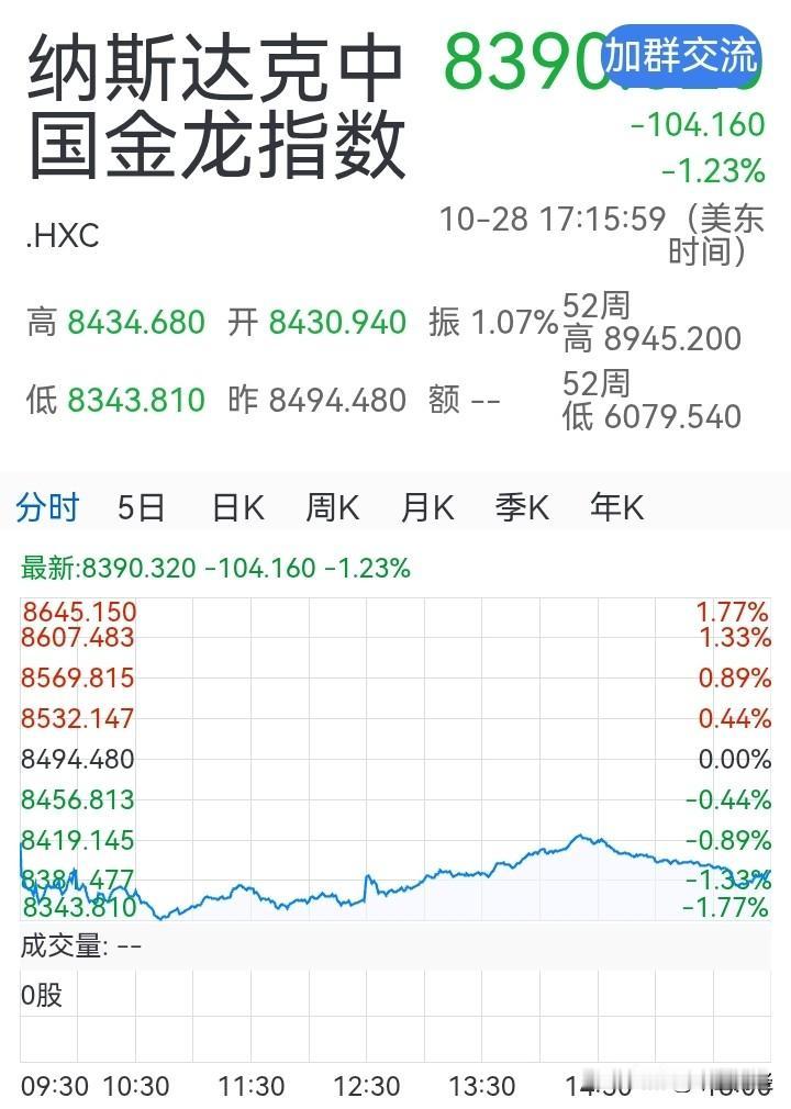 【中概股:太弱!】纳斯达克金龙指数,真是弱呀! 这个代表中国概念股的指数,在道指,纳指,标准普尔创新高,甚至新高连创的背景下,中概股指数竟然处于历史高位腰斩之下的位置。 每天还有相当的股票没有成交,没有人买卖!这个指数的意义大打折扣啊!