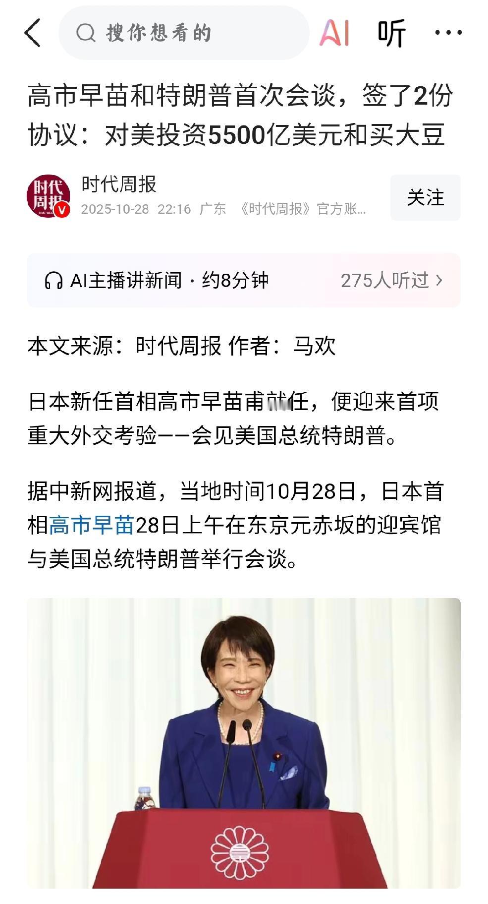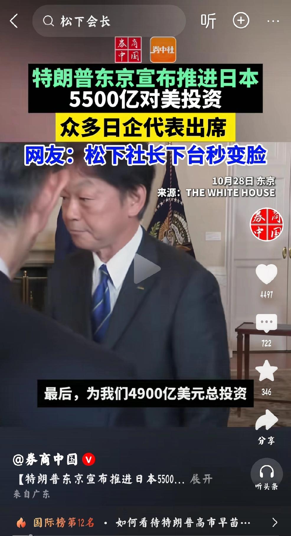 特朗普:今儿真高兴 个人观点:特朗普总统,今儿真高兴,因为拿捏日本,催款成功。高市早苗也很愉快,自认为在外交方面取得了成绩。只有众多日企,不痛快。虽然这是意料之中的事,但是看到日本的现状,还是心里很高兴。因为日本没有精神了, 只剩下了低头求生。