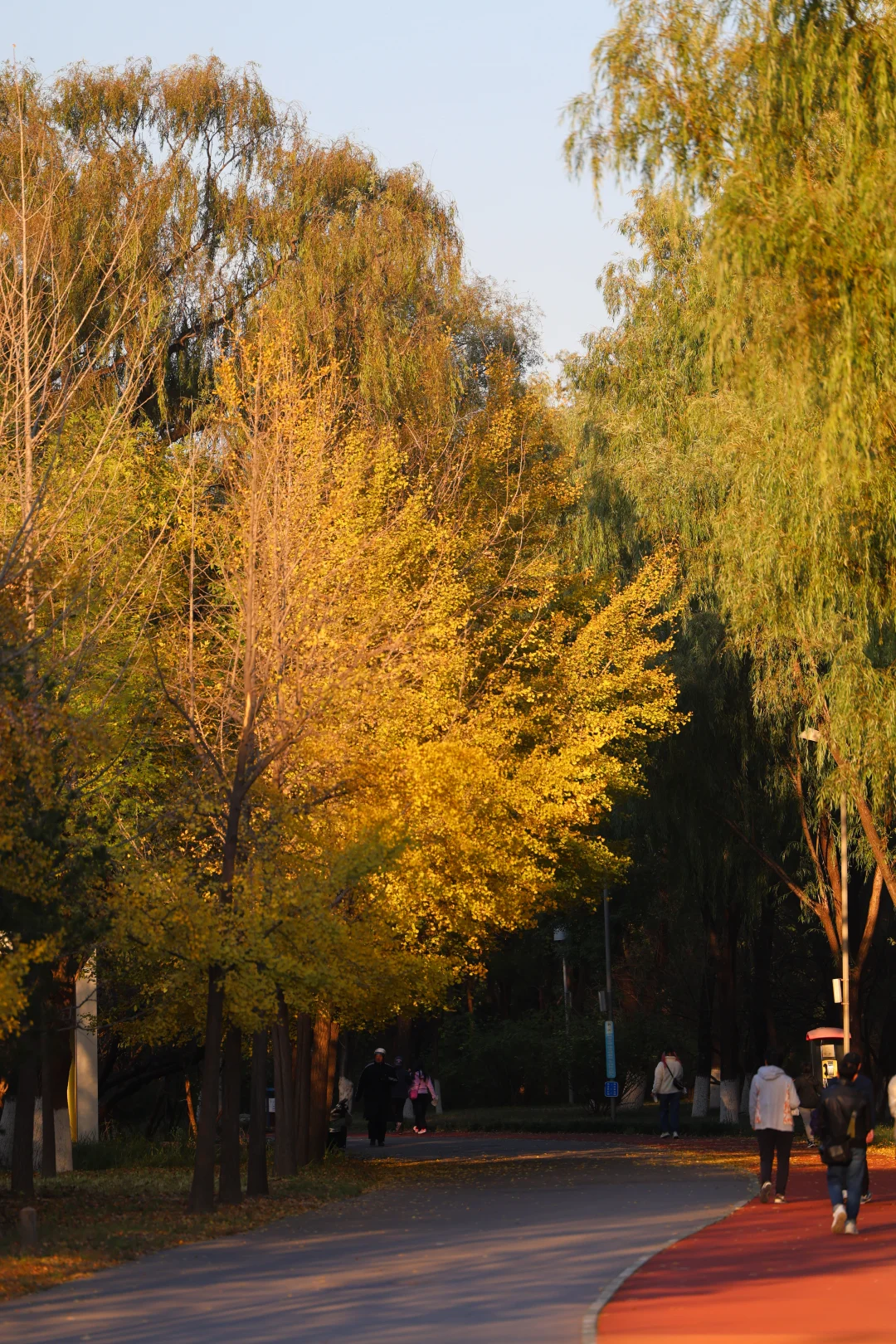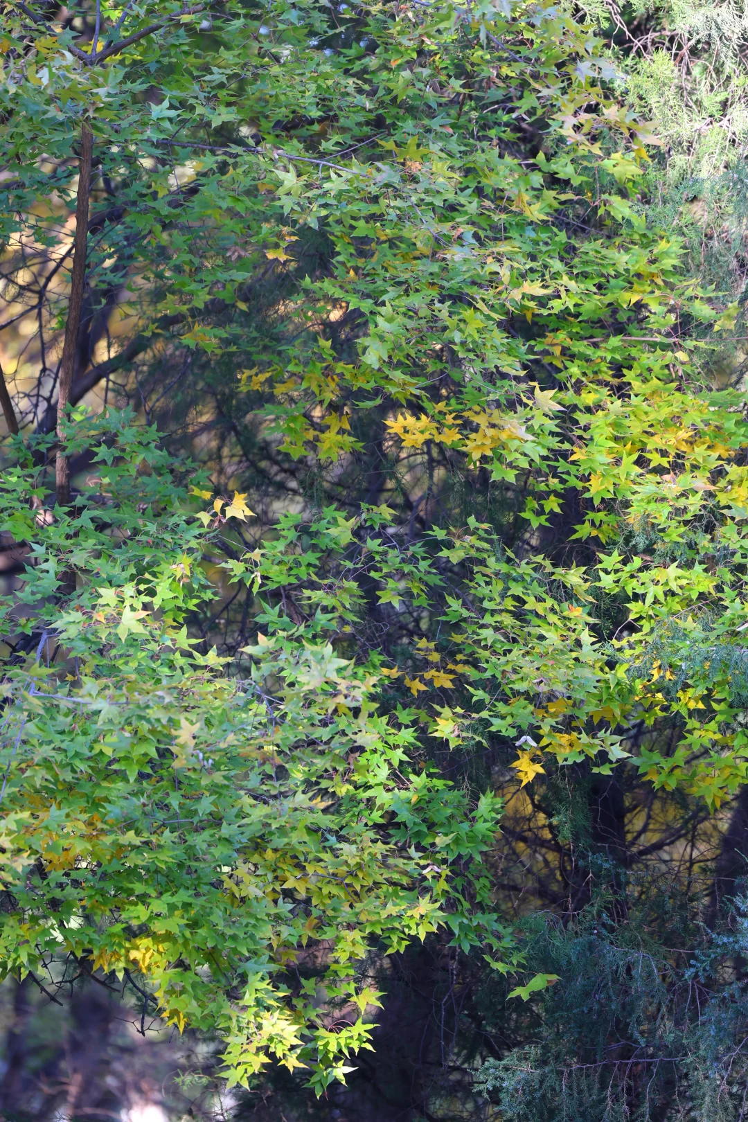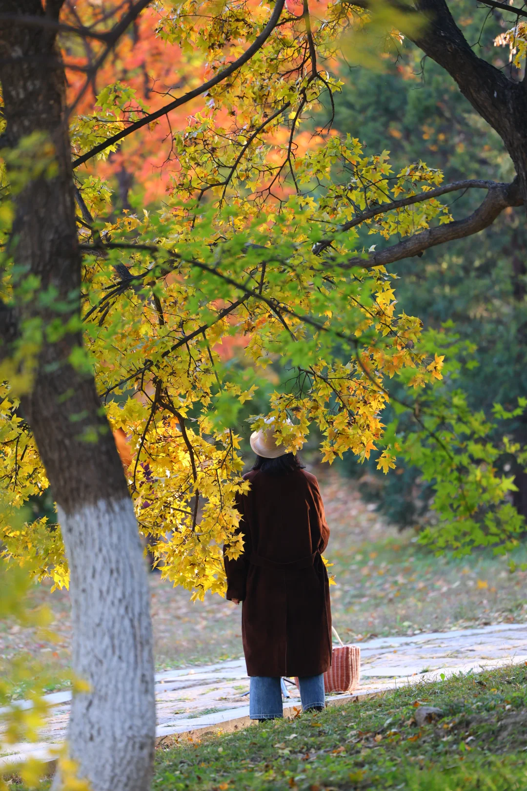 奥森已经黄透啦,已经开始疯狂掉叶子了