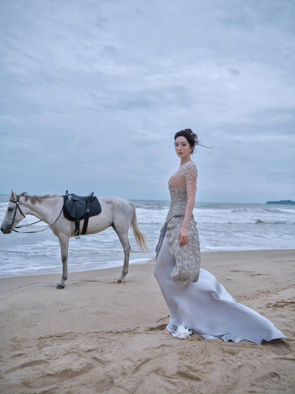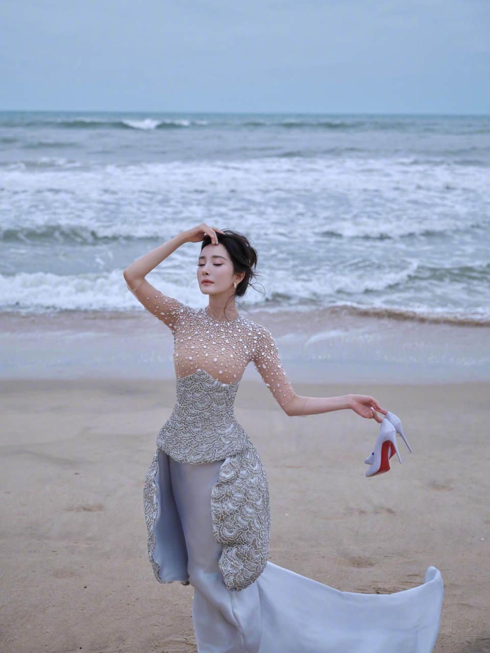 刘亦菲把死亡玫粉穿出了定制款的感觉,这种颜色普通人穿上分分钟黑三度,她居然能穿出