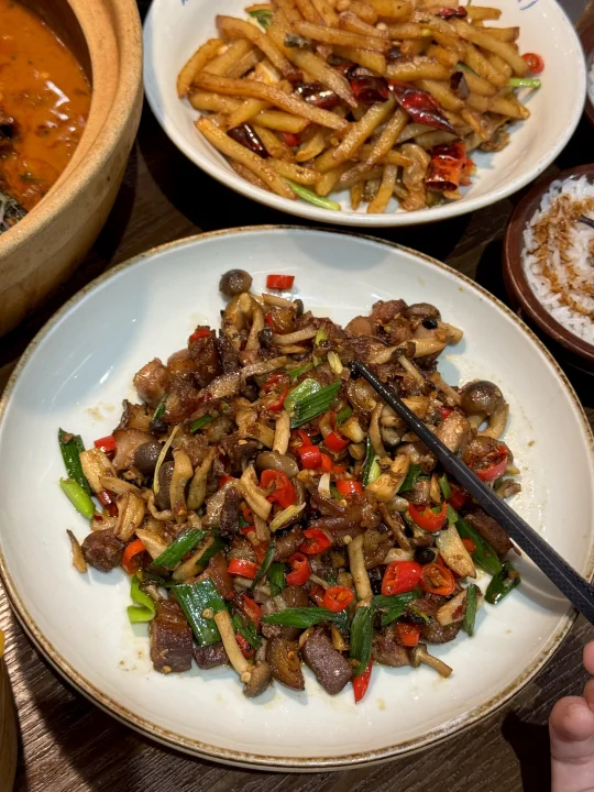 反复去了好多次的美味湘菜 辣辣的香喷喷很下饭 点的zui多的就是柴火稻草鱼 鱼肉鲜鲜嫩嫩的,里面还有软糯米饭 现炒的猫儿山小黄牛很嫩很香 土家手工花卷软蓬蓬好吃的 菌香蹄花、辣椒炒肉拌饭…