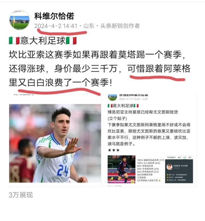 🇮🇹 我为什么一直不看好里奇在A米 除了俱乐部的原因还有阿菜格里 本身A米就是一支从上到下走外援化的球队,本土球员在A米只不过是凑人数打酱油背个锅的角色而已。 另一个主要原因就是阿菜格里,从皮尔洛当年不愿意为其改变而远走尤文图斯开始,它一直就是意大利球员的克星,尤其是在尤文那几年,几名意大利球员被它练的废废的,所以里奇在A米没有任何出路。