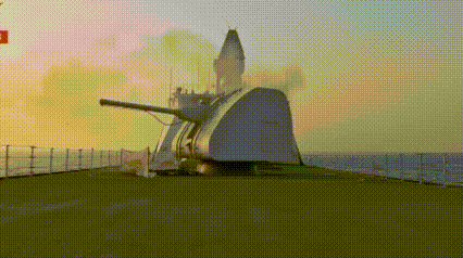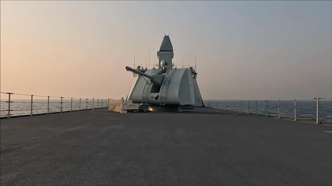 罕见画面,054B护卫舰100毫米主舰炮连续射击!央视军事的报道画面,054B护