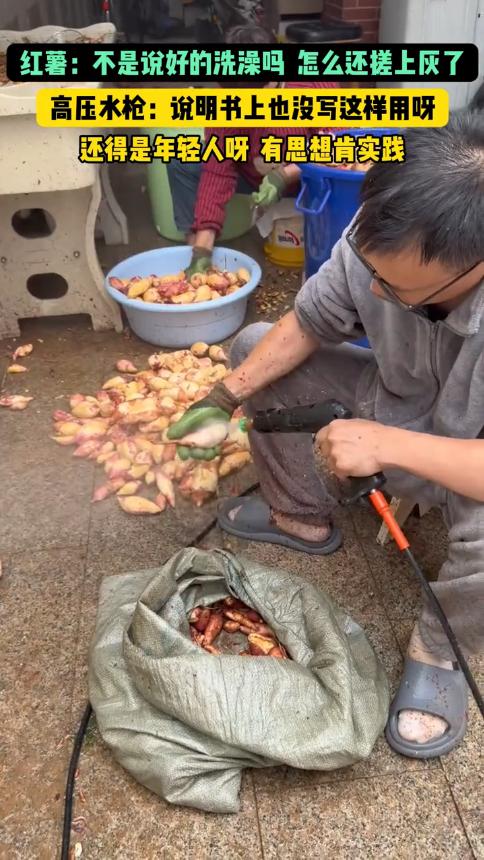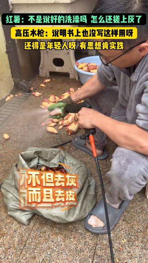 “人怎么可以这么聪明!”10月27日,浙江杭州,一男子见母亲手洗地瓜太辛苦,就想分担一点,他忽然想起之前买来洗车的高压水枪,经过仔细的调试,最终控制好了水压,瞬间就将泥土冲刷干净,而且还不会伤到瓜瓤![得意] 十月下旬正是浙江本地甘薯采收的旺季,杭州一户农家院子里,堆满了刚从地里收回来的地瓜,传统的清洗方式需要人蹲在水盆旁,用刷子逐个刷洗,费时费力,一天也处理不了多少。 这家的儿子看到母亲长时间弯腰清洗,决定想办法减轻她的劳动负担,他尝试使用家中洗车的高压水枪来冲洗地瓜,初次使用时由于水压过高、距离太近,导致地瓜表皮被冲坏。 经过多次调试,他找到了合适的操作方式,保持约半米的距离,调整水枪至适中压力,让水流呈扇形覆盖地瓜表面。 这种改良后的清洗方法显著提升了效率,从实际操作效果看,水枪能快速冲掉地瓜表面的泥土,同时对完整度较高的地瓜不会造成损伤,相比传统手工刷洗,这种方法不仅减轻了劳动强度,也节约了用水。 这种方法的核心在于利用水压去除泥土,其原理与专业农产品清洗设备相似,对于表面较为平整、质地坚实的根茎类作物,如土豆、胡萝卜等,在控制好水压和距离的前提下,同样可以尝试使用。 不同质地的泥土需要调整冲洗方式,沙质土较易冲洗,而黏性较大的泥土则需要适当增加冲洗时间或调整水压。 看了这位杭州大哥用高压水枪洗地瓜的故事,评论区可太热闹了,大家的智慧火花四溅,讨论的热火朝天。 “这方法不算新鲜,早就用上了。” “我们老家洗姜、洗胡萝卜都用这招,关键是水压和距离要掌握好,跟冲车一个道理,离太近漆都冲掉了,别说地瓜了。” “没错,而且比用手抠省事多了,特别是下雨天收回来的地瓜,裹满泥巴,水枪一冲,干干净净。” “那我洗小龙虾能不能用这个?一个个刷太费劲了!” “别!劲儿太大,直接把虾黄冲没了,肉也冲散了。” “洗拖鞋底、洗地毯、洗空调滤网,感觉这水枪才是真正的家务神器啊!” “下次家里大扫除,是不是能用它来冲洗阳台纱窗?” “高压水枪功率大,耗水耗电,洗一点地瓜划算吗?还不如用便宜的低压喷枪。” “感觉有点大炮打蚊子,水哗哗流,不如用个大盆多泡一会儿再简单冲冲。” “安全第一!千万别对着人或者小动物,压力非常大,容易出事。” “这儿子没白养,知道动脑筋帮老妈分担,比那些光站着看的人强多了!” “这就是生活的小智慧,解决问题不一定需要多贵的设备,灵活运用手头的东西就行。” “现在年轻人愿意下地帮忙的都不多了,还能想办法提高效率,真不错。” 如果你家也有个高压水枪,除了洗车,你觉得它还能用来干什么最实用或者最意想不到的事情?快来评论区分享你的奇思妙想吧! 信源:河北广电报业 国+社区