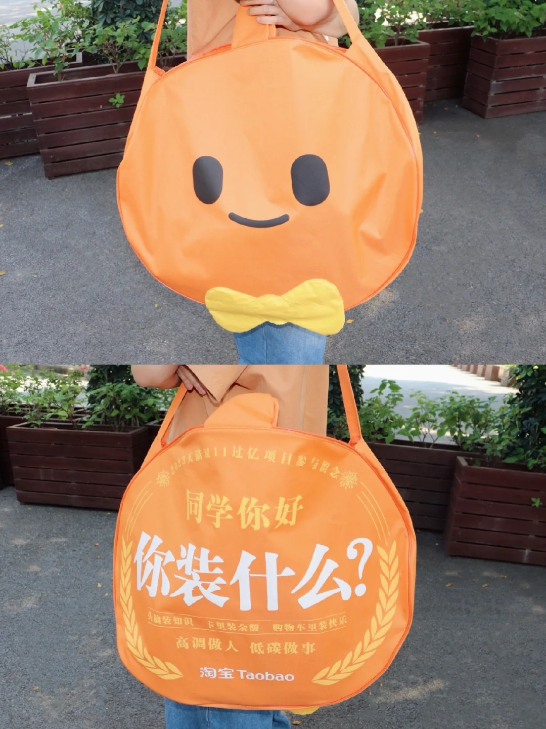用双11快递纸箱兑换的淘宝环保购物袋,这么适合凹造型!