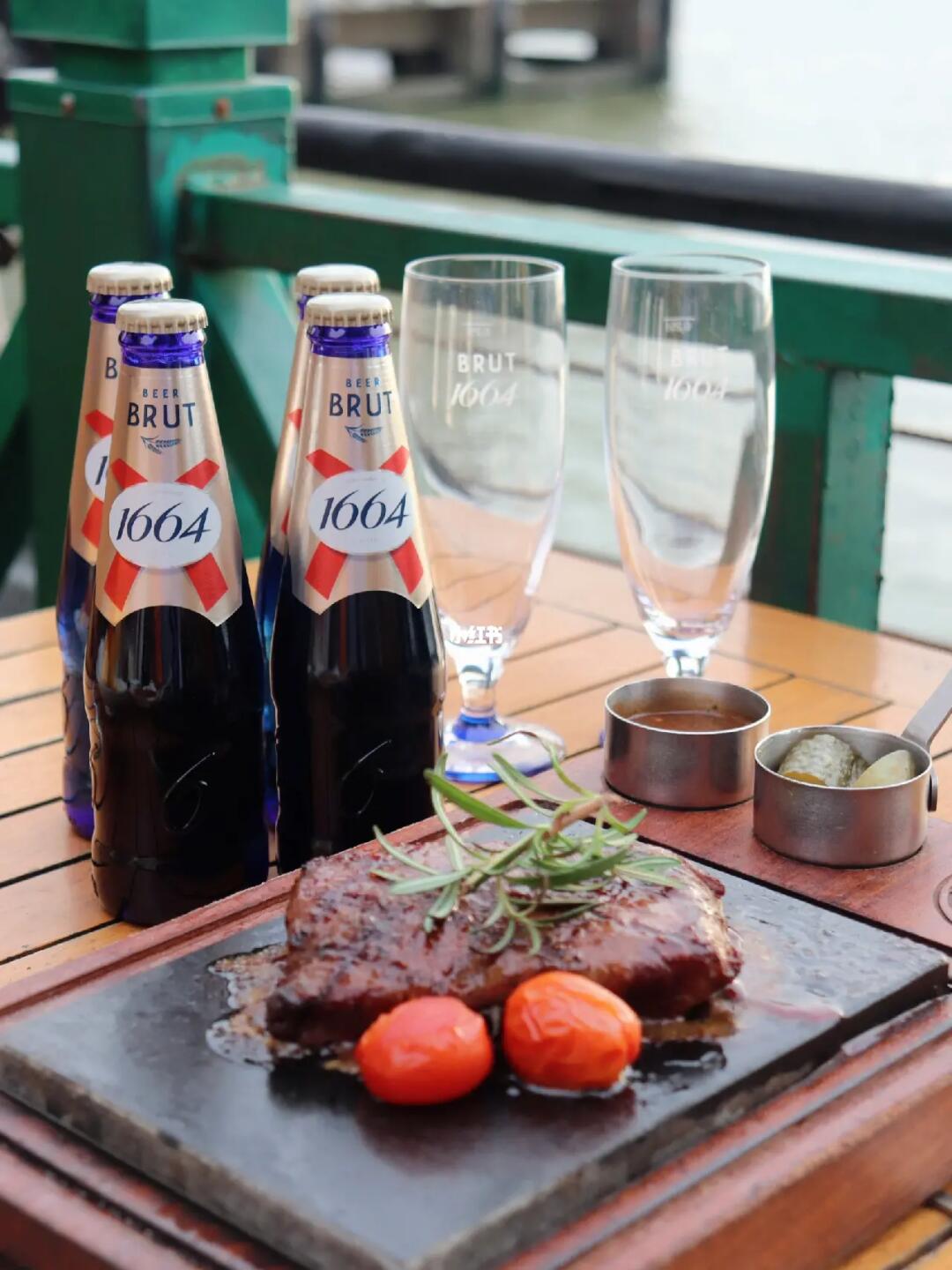 无比喜欢喝朋友们在一起的时光, 每个月总会约上几个朋友聚会, 听闻最近江边聚会很火? 想要营造冬日傍晚的聚会氛围感, 当然少不了1664 BRUT 法蓝啤酒! 香槟金配色+香槟般的香气+香槟的口感, 真的就是香槟平替啊! 妥妥的高端啤酒! 1664 BRUT 法蓝 和以往1664白啤、桃红的果味啤酒都不同, 法蓝啤酒是一款法式拉格, 气泡会更多, 是那种喝得到的爽爆口感! 啤酒和香槟般清爽的口感完美mix在一起, 男生聚会畅饮有它真的太尽兴了~ 好友之间为见面而举杯, 嘻哈不停歇,快乐不停歇!