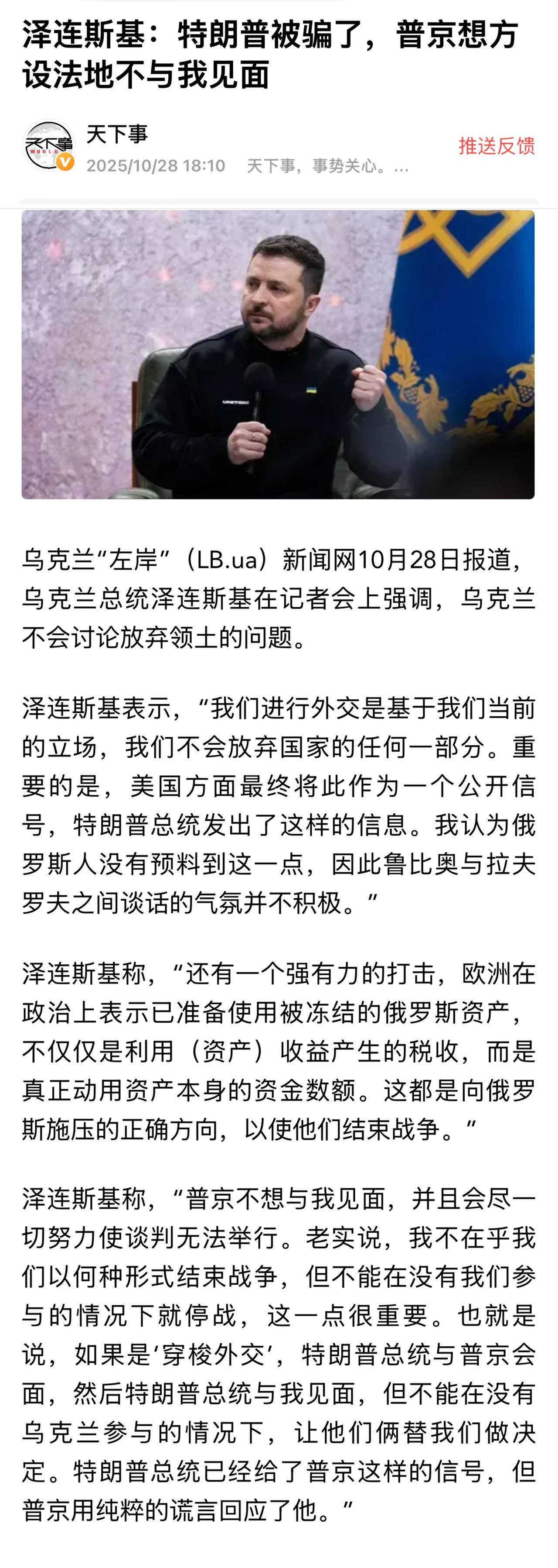 泽连斯基的指控反映了一个残酷的现实:特朗普的施压策略与普京的回避战术,尽管形式不同,但客观上共同削弱了泽连斯基的谈判意愿。 由于俄乌双方对和平的预期和目标存在根本性分歧,最终导致和谈前景更加渺茫。