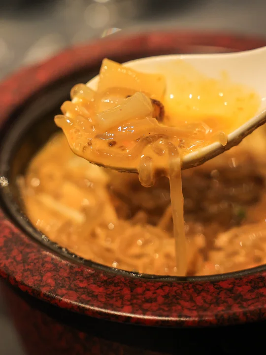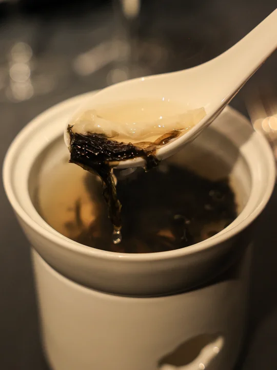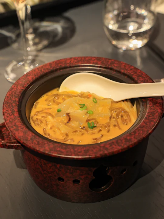🏨虽然米其林酒店榜单看似比餐厅榜单更不像样,但作为长沙人来说,怎么样在家乡也是有一家店真的和米其林title挂勾的地方了🙏 🍴虽然荣誉给的是酒店本身,但蕾兰也是我吃了挺多次的餐厅,作为高空酒店餐厅+dowtown的位置,蕾兰本身也是沙柏绕不开的话题之一。 这次晚宴除了餐牌上的菜,还有几款特制的off menu,吃完相信未来若是米其林餐厅进入长沙,这家也会有不俗的竞争力😂 🧾看到菜单上的花胶蟹粉烩豆面,以为是一道很俗的类似沙蒜豆面的菜,结果不落窠臼,用酸汤打底,泡椒的辣味与粉丝的感觉组合下来非常湘式,加上花胶给整体增稠,以及蟹粉的颗粒感,非常完整好吃的一道菜,喜欢! 🐦另外吃到蕾兰出品的乳鸽确实在长沙算是t1级别了,卤水味由自己的风格,但玻璃脆皮做得特别到位,印象很深。 🍾加入了香槟元素的巧克力甜品,清澈的气泡感与巧克力慕斯和香蕉泥的甜组合得很棒。 🧾附晚宴菜单: 🐮酸萝卜贡椒牛肉 🐔咸香白切阳山鸡 🐟烟熏银鳕鱼 🐟烧辣椒油卤鲜鲍 🐟头水紫菜莲子煲鲟鱼筋 🐦玻璃脆皮乳鸽 🦞炙烤波士顿龙虾 🦀花胶蟹粉烩豆面 🥬米汤燕麦高山豆苗 🍌黑糖巧克力香蕉