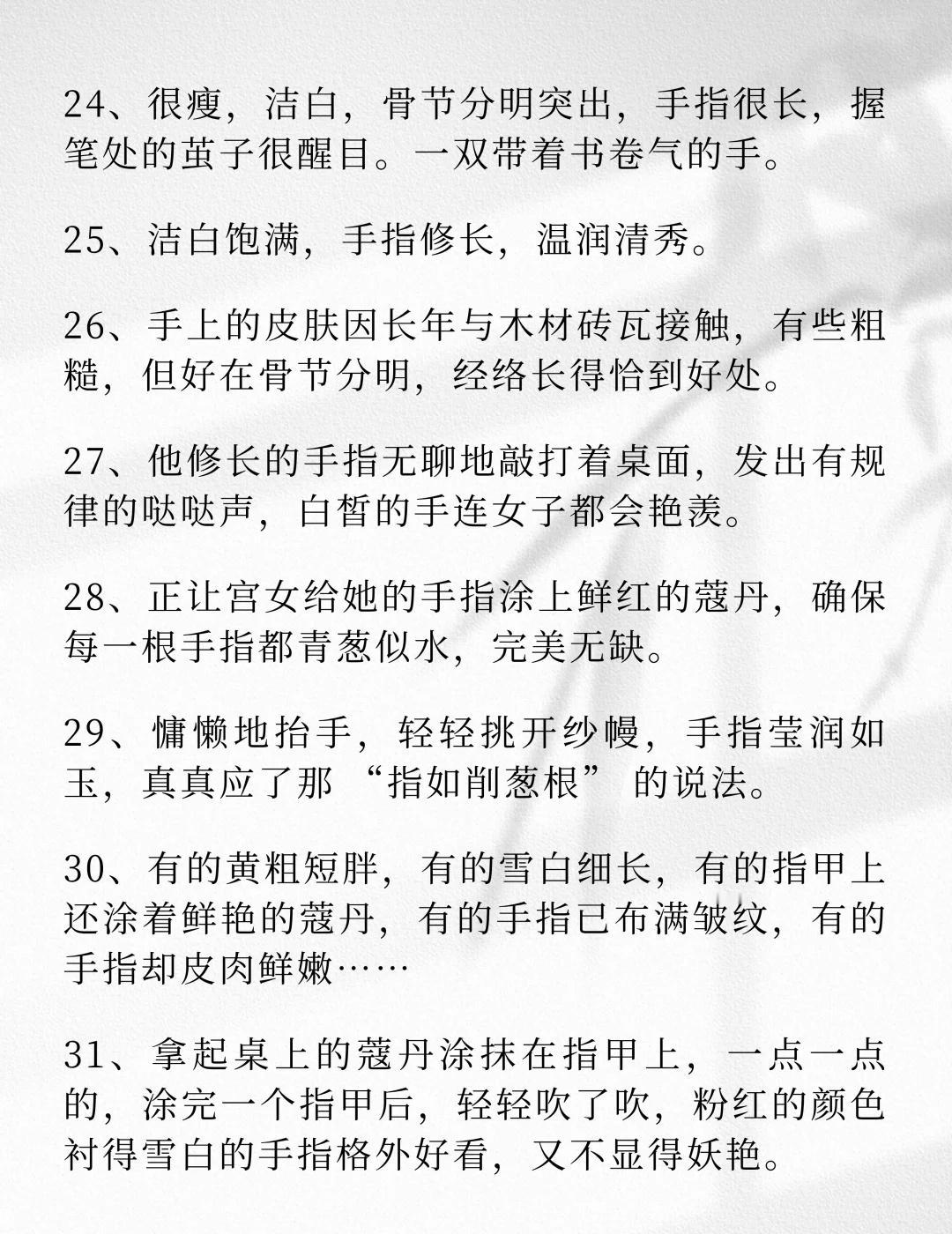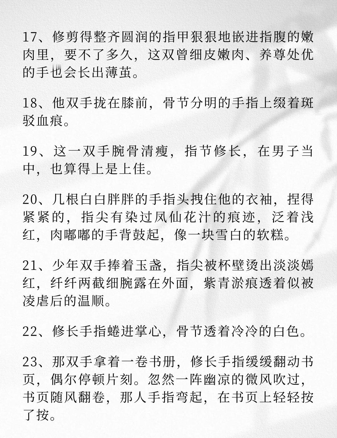 如何描写小说中的“手部特写” 一起写小说 小说人物设定 写小说 写作练习 写网文 网文小说 小说写作素材 小说写作干货 日常写作