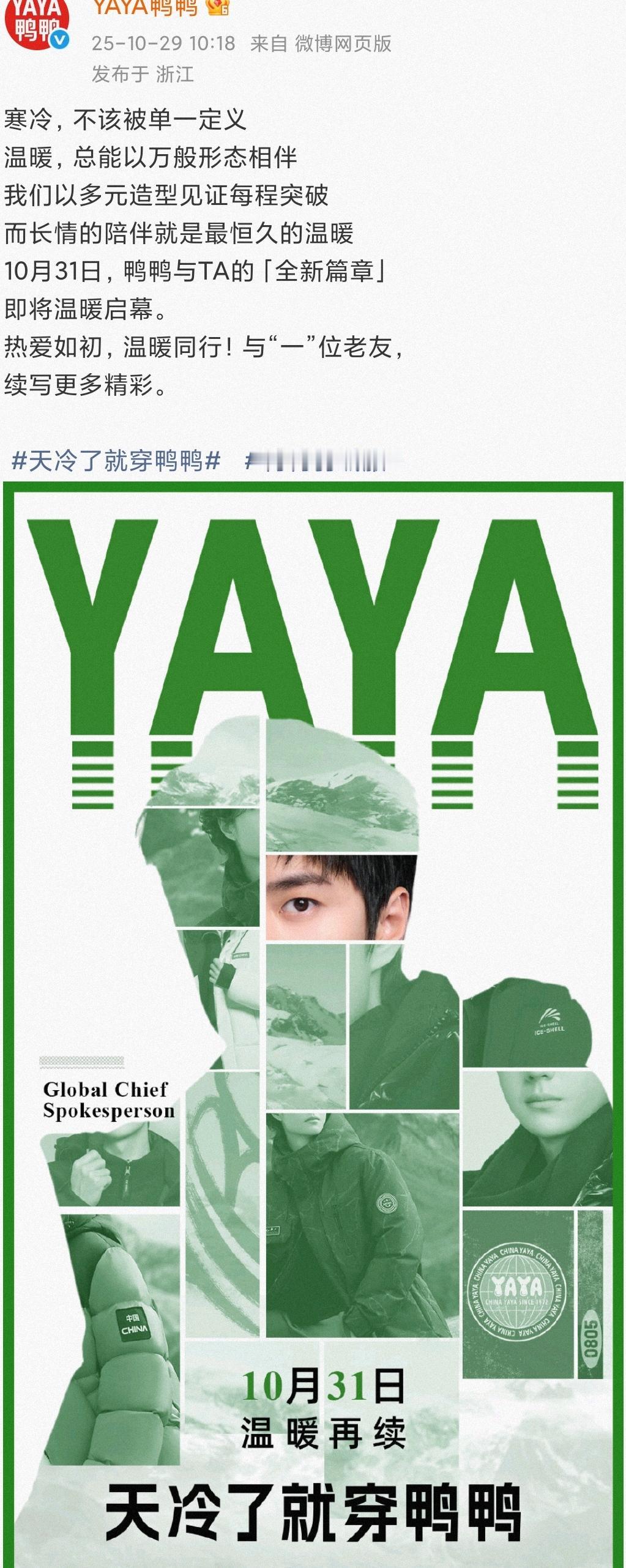 王一博鸭鸭品牌全球首席代言人续约预热👏🏻! “一”永远是唯一的最高最好的那个“一”,是独一无二的“全球首席”的一! 几年了?内娱商业价值一骑绝尘的,仍然还是王一博。