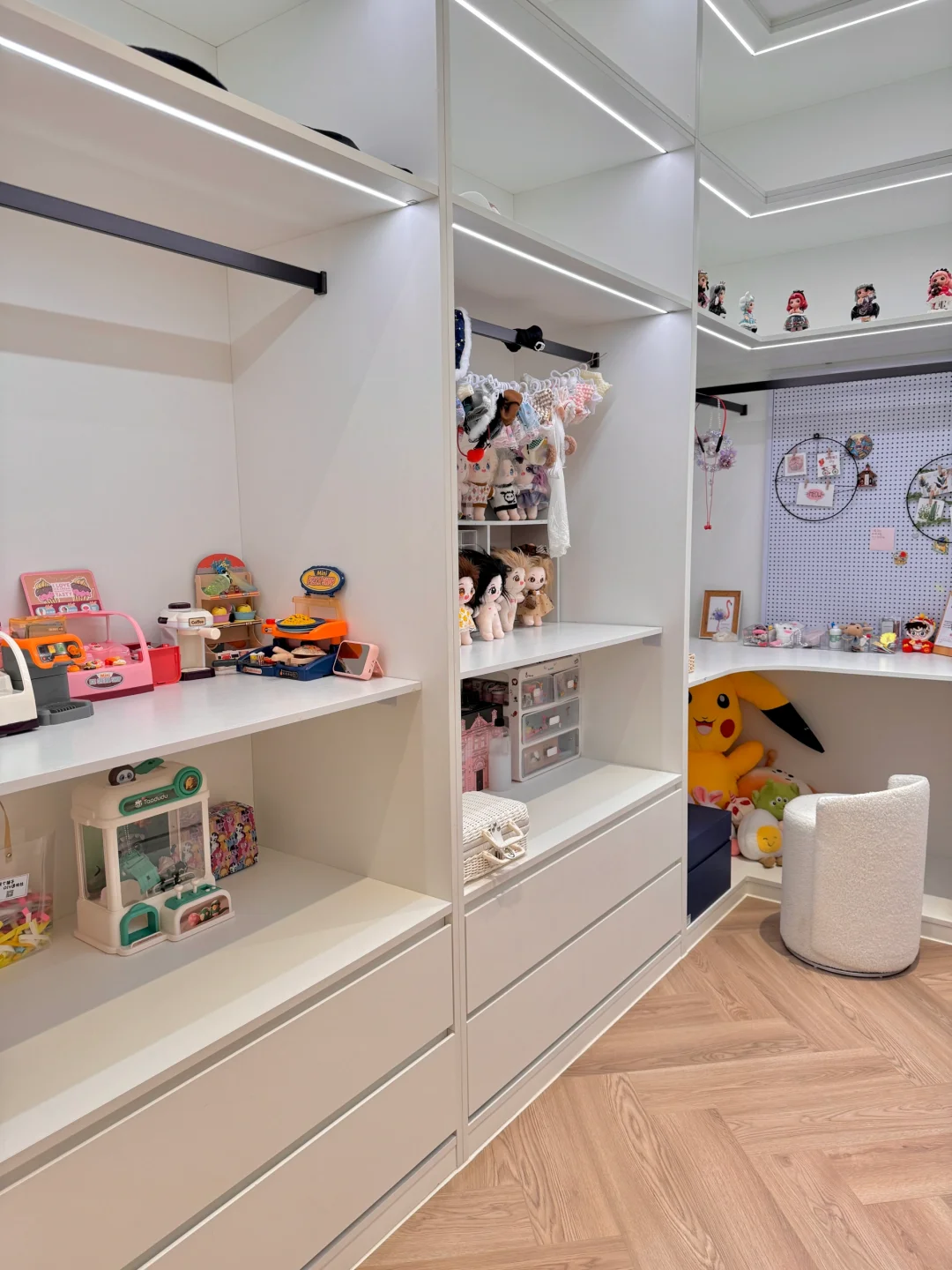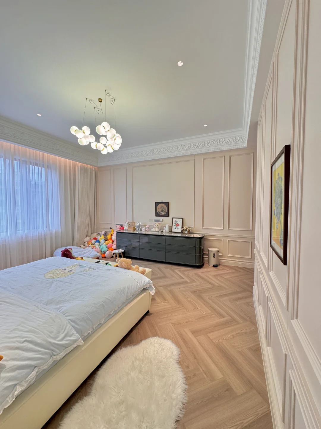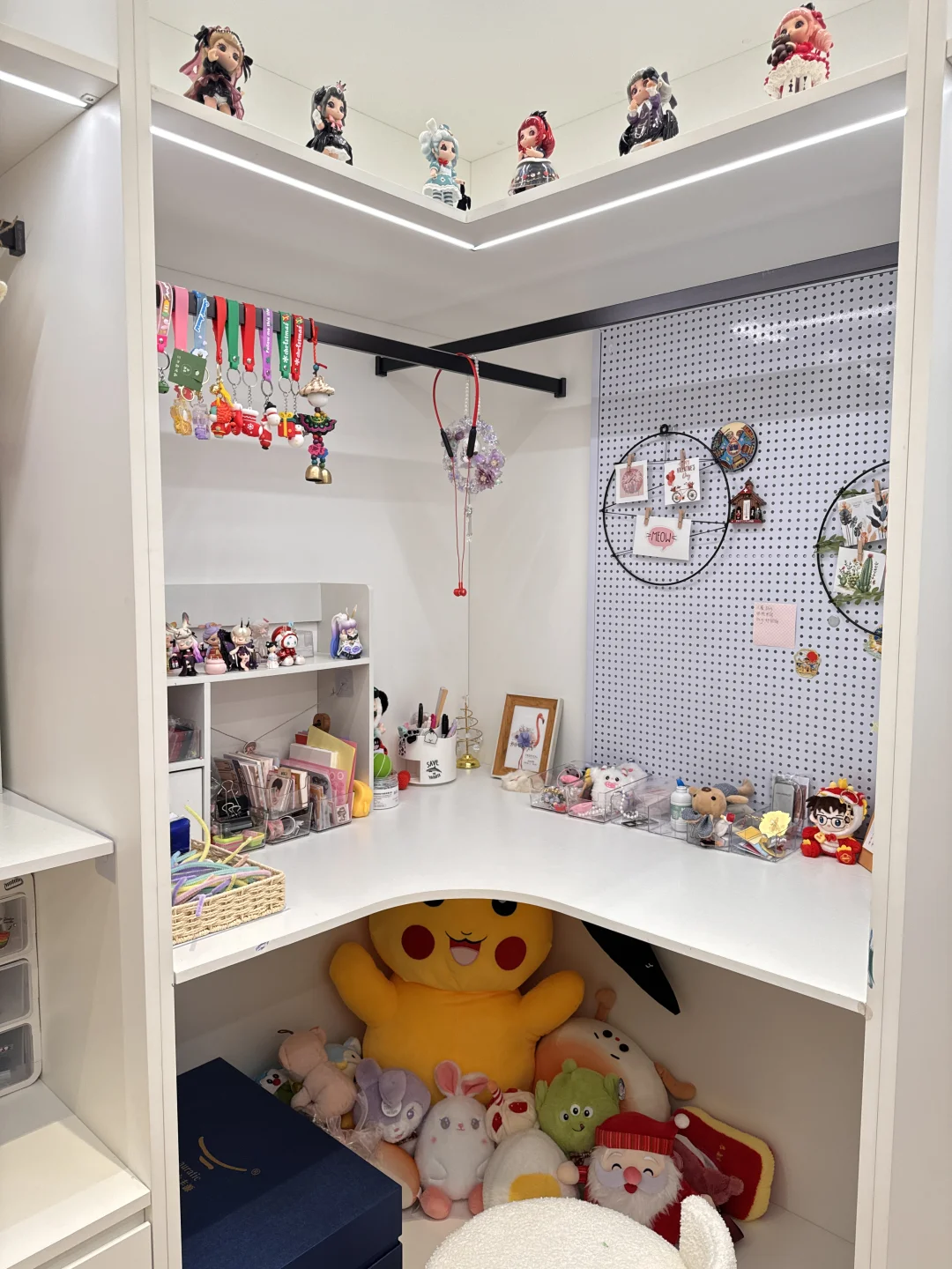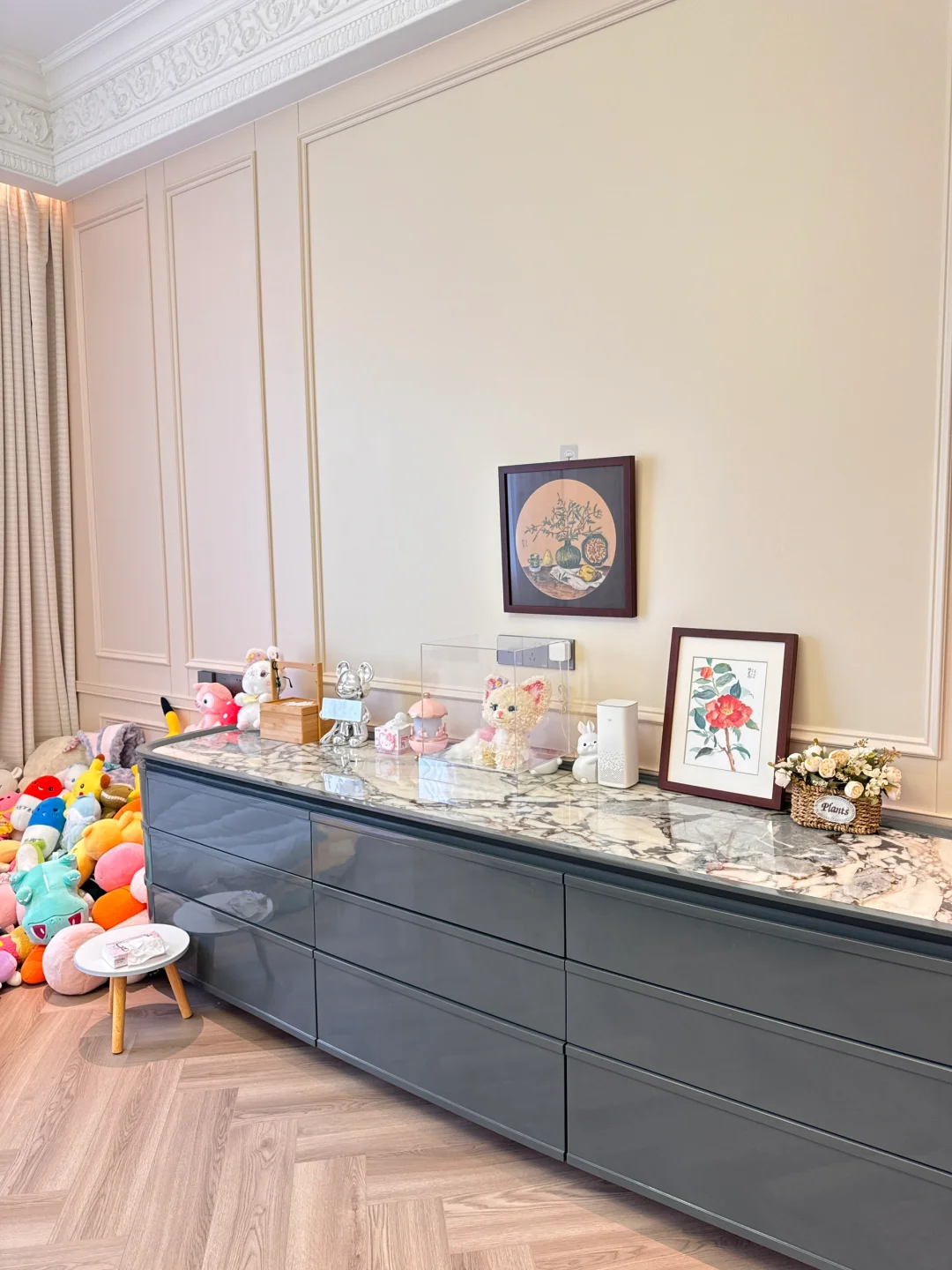 家居美学 女孩房软装 少女心卧室 主卧装修 卧室分享 法式装修 女儿房 每个家都值得用心 欢迎来到我的家 别墅装修 卧室里摆满了她自己抓的娃娃 房间的四件套也是女儿自己挑选的配色 卧室的所有装饰画是女儿小时候自己画的 有些放在她的卧室里 有些我们装订好摆在了其他的房间里 放棉花娃娃的房间呢之前是个衣帽间 女儿有了自己的想法以后 就将它打造成了自己的小天地 希望她能在童年开心快乐